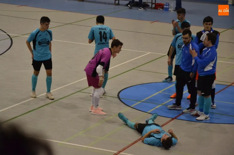 A la vuelta de vestuarios, se produjo un toma y daca de lo más entretenido, en el que comenzó mandando el III Columnas. A continuación, el Alhambra de Guijuelo le dio la vuelta al marcador (4-5), empleando para ello la estrategia de portero-jugador. El III Columnas no se rindió, y volvió a empatar el encuentro con la misma estrategia.