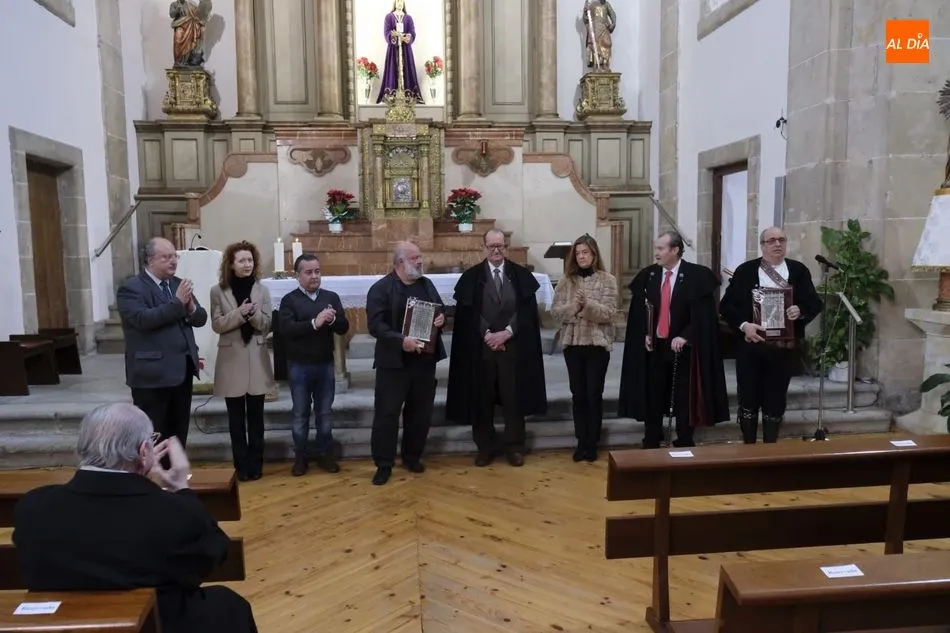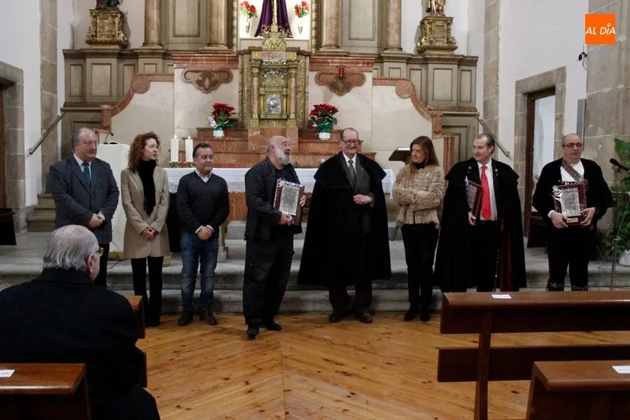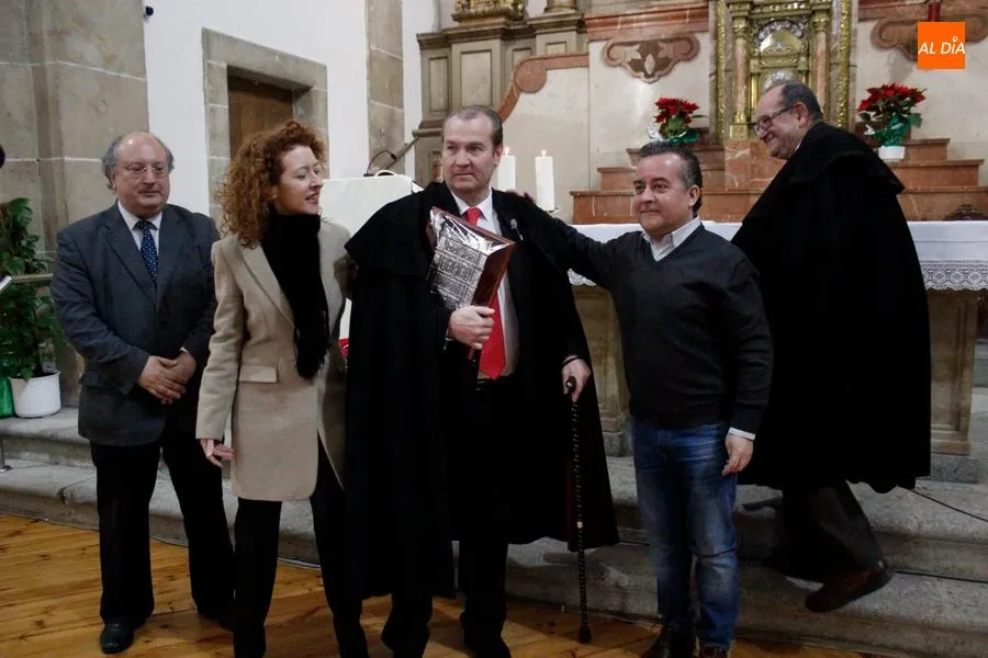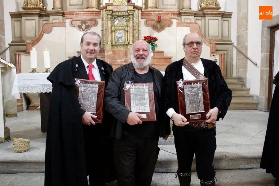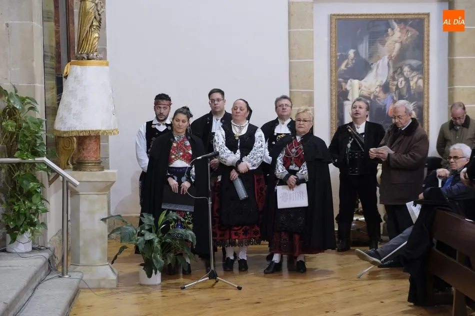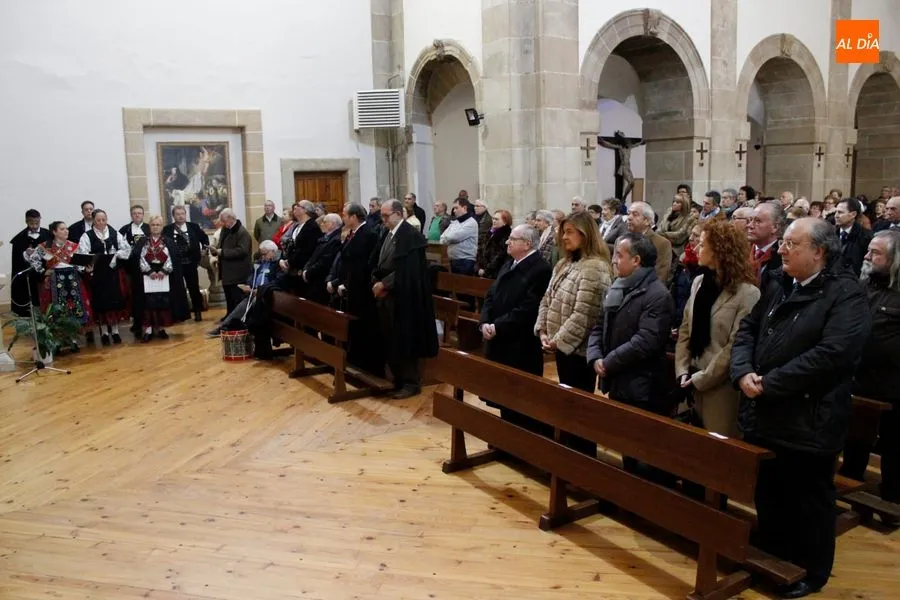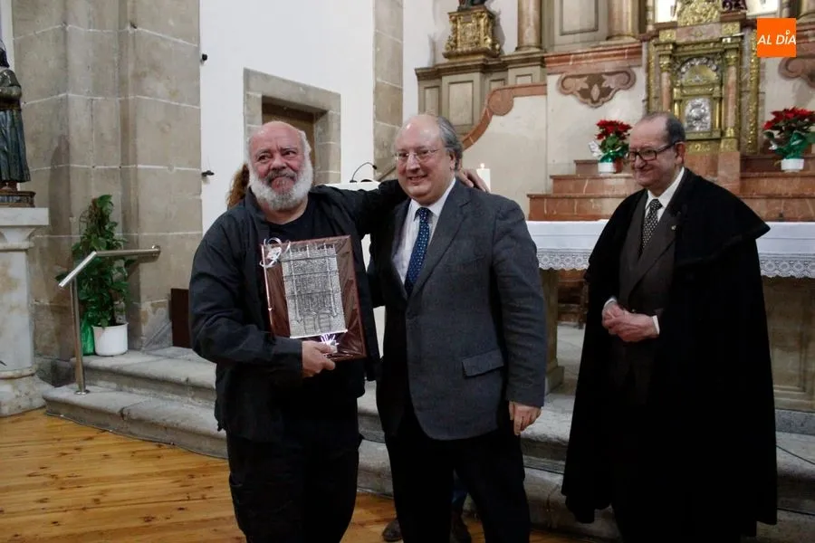 La Parroquia de San Pablo acogió este domingo el XXVII Aguinaldo del Folclore Salmantino organizado por las asociaciones vecinales Acaban, Bateun y Salan-Bateun. Tras la misa cantada por La Corrobla, bailaron delante del altar una pareja de charros al son de la gaita y el tamboril de José Manuel Bustos. A continuación se procedió a la entrega de las placas y el Águila de Fauba a los populares del Barrio Antiguo, que en este 2019 fueron el tamborilero José Luis Huete Caballo, el fotógrafo Gabriel Alonso García y el actor Fernando Saldaña Fernández.