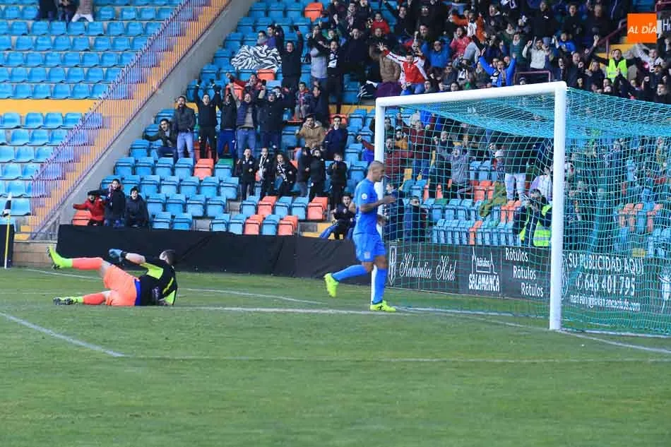 Pese a ello, el Salamanca UDS tuvo la capacidad de recomponerse con un extraordinario disparo de Iván Calero, que marcó su tercer gol de la temporada y vio puerta por segundo duelo consecutivo, que fue imparable para Biel Ribas, pitado por la afición charra cada vez que tocaba el balón. Todo un golpe de autoridad del bando blanquinegro cuando peor lo estaba pasando.