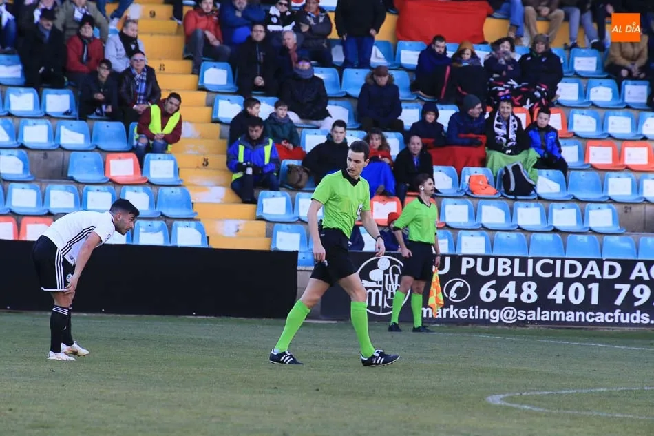 El central andaluz no pudo acabar el partido tras ver una doble amarilla en los instantes previos al segundo tanto del cuadro madrileño, que, a la postre, condicionó la derrota del conjunto charro