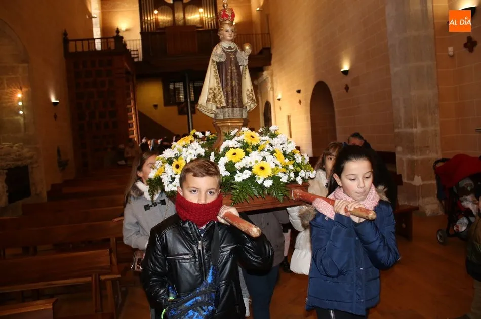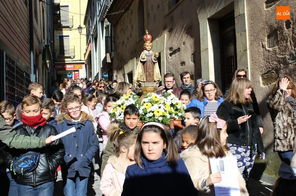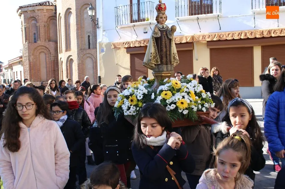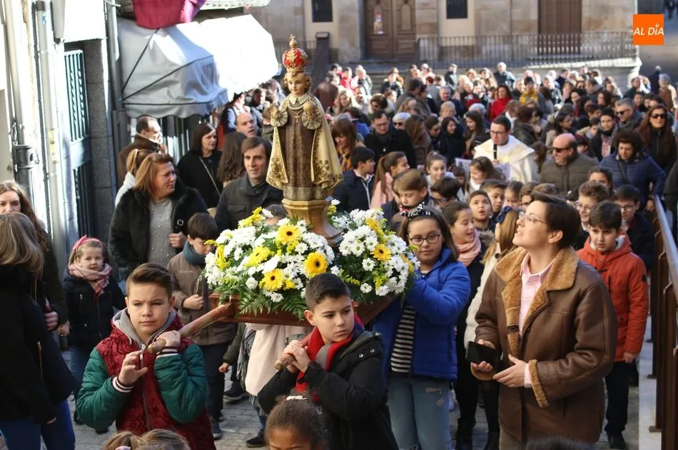 Al finalizar la misa, volvió de nuevo procesionalmente la imagen del Niño Jesús a recorrer las calles de Alba de Tormes, para posteriormente volver a la iglesia de la Anunciación. Y fue allí, al final de todo el acto, donde se entregó a cada niño, como obsequio del Niño Jesús, un bollo dulce y una naranja, el gesto más tradicional y que nadie en Alba de Tormes olvida de los tiempos pasados.