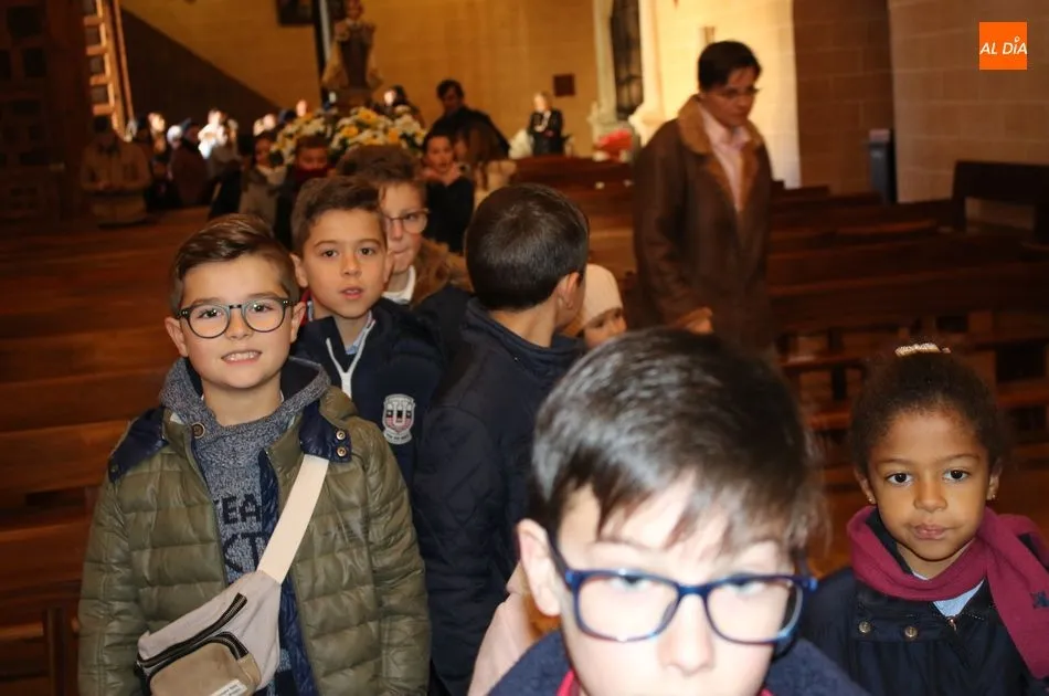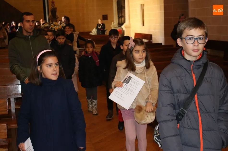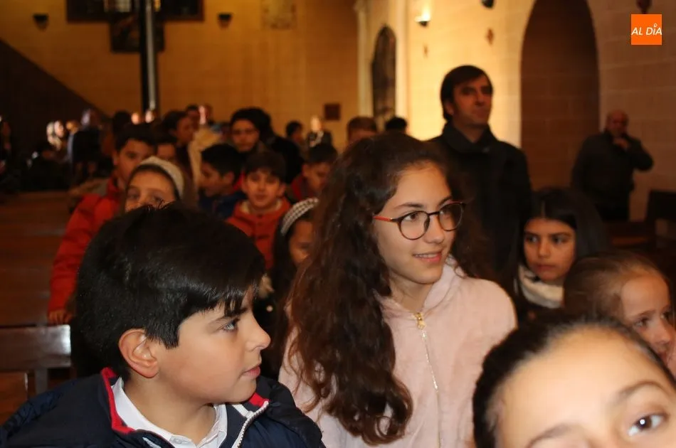 Al mediodía se celebró una misa solemne en la iglesia de la Anunciación, que estaba abordada de niños, padres y gente joven. Frailes y monjas carmelitas participaron en comunidad, pero los verdaderos protagonistas fueron los niños que hicieron moniciones, preces y oraciones.