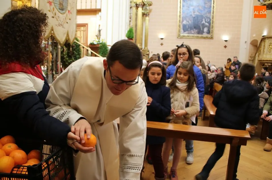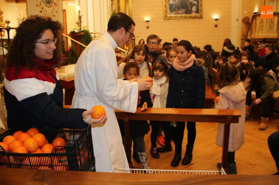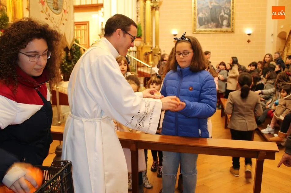 Los Carmelitas repartieron más de 200 bollos dulces y doscientas naranjas, una tradición peculiar de esta festividad