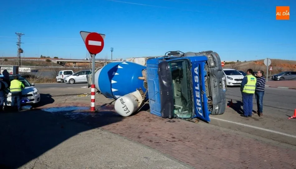 Un camión hormigonera ha volcado este lunes, a las 13.15 horas, en la carretera de Zamora, junto al estadio Helmántico. El siniestro, que se saldaba sin heridos, llevó hasta la zona a efectivos de la Policía Local y de la Guardia Civil, que tuvieron que regular el tráfico en el citado tramo.