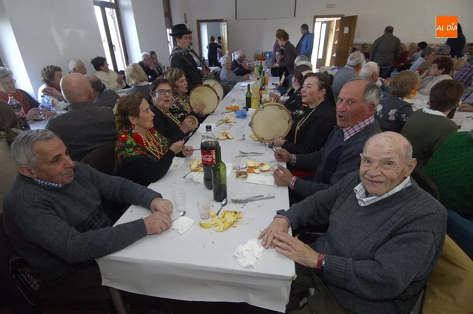 De regreso al templo, hubo una serie de bailes a sus puertas, a los que siguió un pasacalles musical. Tras una parada en el bar, la ruta desembocó en el multiusos, donde se disfrutó de una comida conjunta a la que asistieron, además de la práctica totalidad de los vecinos, varios alcaldes de la Mancomunidad Alto Águeda, diputados provinciales y el presidente de la Diputación Javier Iglesias.