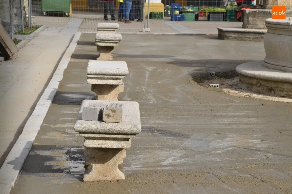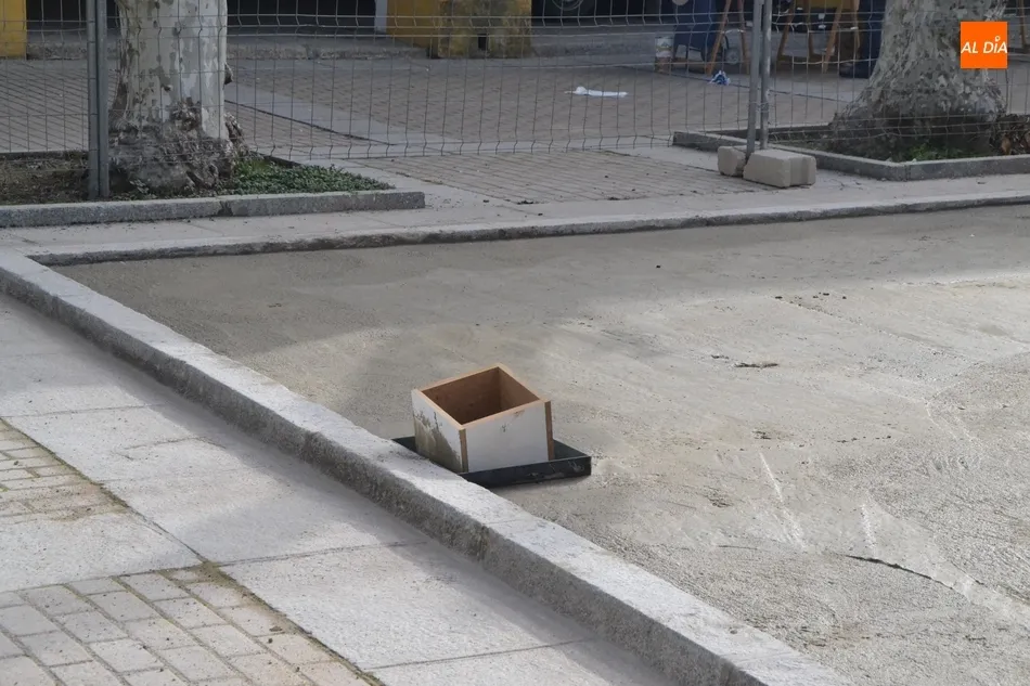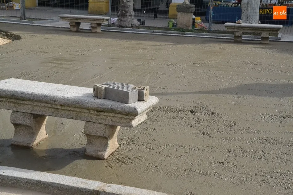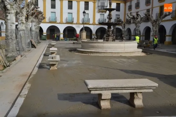 Tras una semana de intervención, la arena ya es definitivamente historia en la zona central de la céntrica Plazuela del Buen Alcalde de Ciudad Rodrigo (queda un poco en la Plazuela; en los parterres donde se encuentran los árboles).