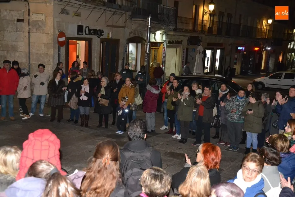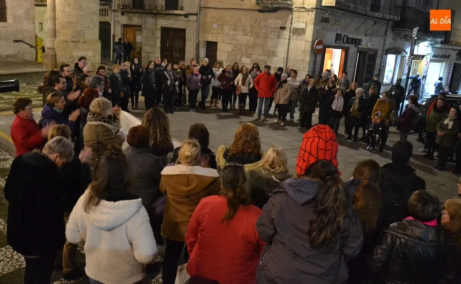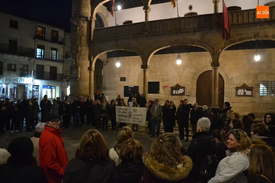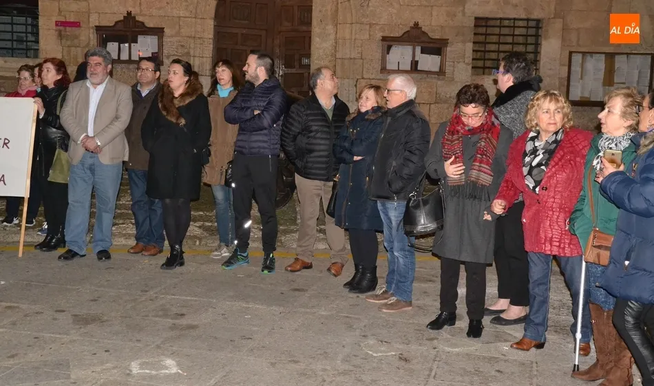 La concentración en Ciudad Rodrigo fue convocada por la Asociación de Mujeres Progresistas Lorenza Iglesias (Ampli), dándose cita en la Plaza Mayor alrededor de un centenar de personas, entre las que estuvieron todos los concejales del Partido Socialista e Izquierda Unida en el Ayuntamiento: Juan Tomás Muñoz, Azahara Martín, Carlos Fernández Chanca, Begoña Moro, Domingo Benito, Alejandra Méndez y Manuel Choya.