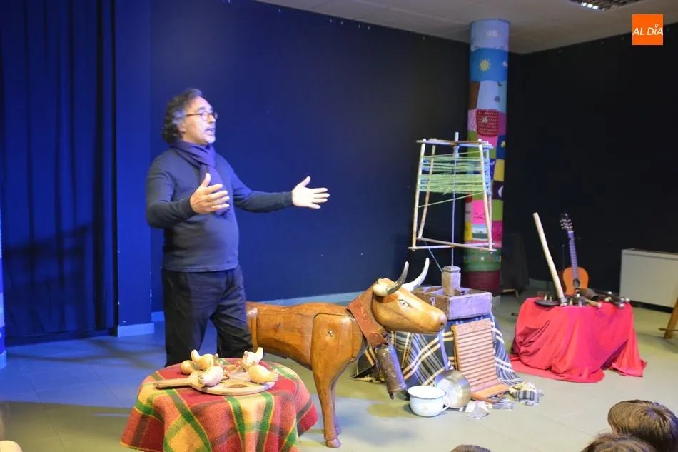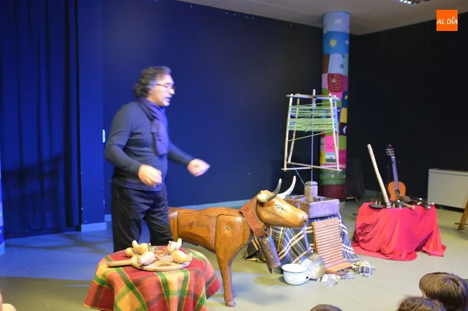 La biblioteca municipal de Villamayor ha sido escenario este miércoles de la presentación de ?El tamboril con botas? de La Fabulosa Retahíla. El público asistente ha podido disfrutar de este concierto didáctico que convierte el escenario en un auténtico museo etnográfico de la música tradicional castellana gracias al gran trabajo realizado por el folclorista charro Gabriel Calvo.