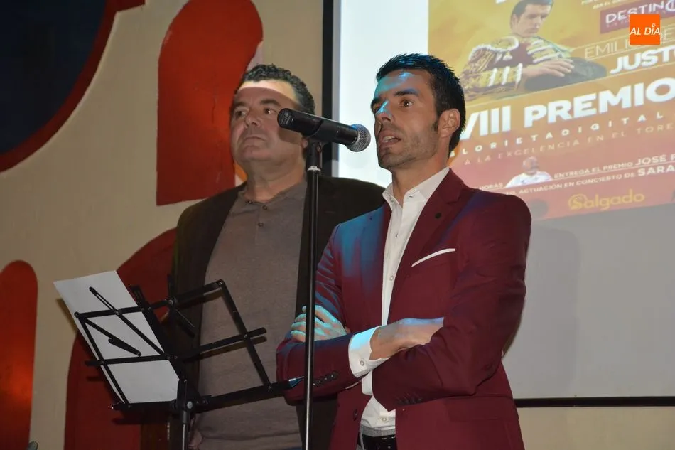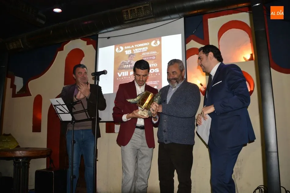 El matador de toros extremeño Emilio de Justo ha recogido este viernes en Salamanca el VIII trofeo a la ?Excelencia en el Toreo 2018?, galardón que ha recibido de manos del televisivo José Pinto.
