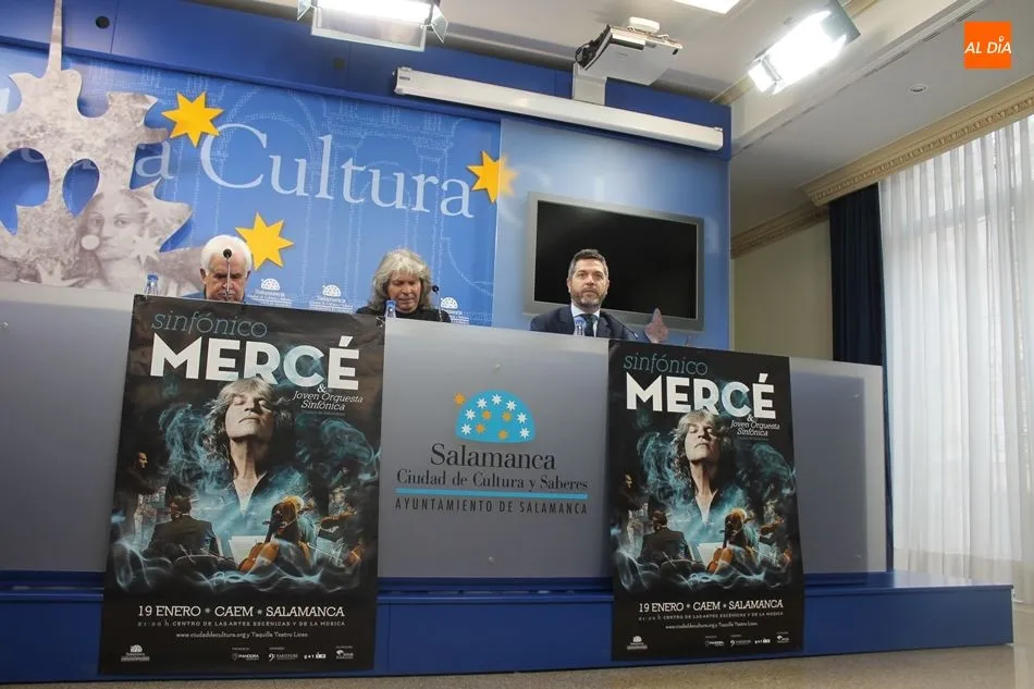 José Mercé regresa a Salamanca con ?Mercé Sinfónico?, ?lo mejor de su trayectoria profesional avalada por 19 álbumes publicados y numerosos premios y reconocimientos?, en palabras del concejal de Cultura, Julio López, en la presentación del concierto en la que también estuvo el cantaor jerezano. ?Va ser una noche mágica?, apuntó Mercé. Y lo hará además con el mejor acompañamiento musical, la Joven Orquesta Sinfónica Ciudad de Salamanca.