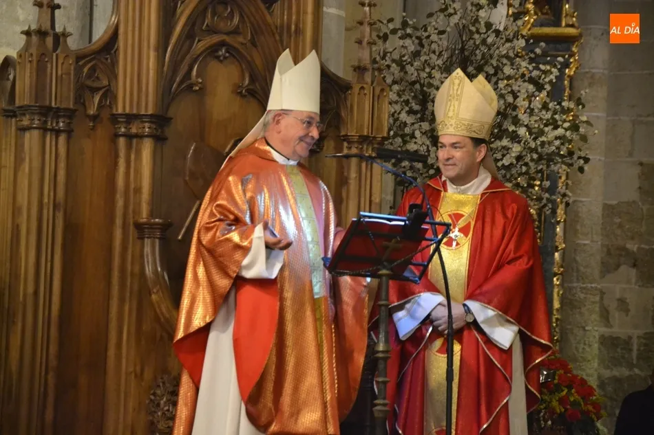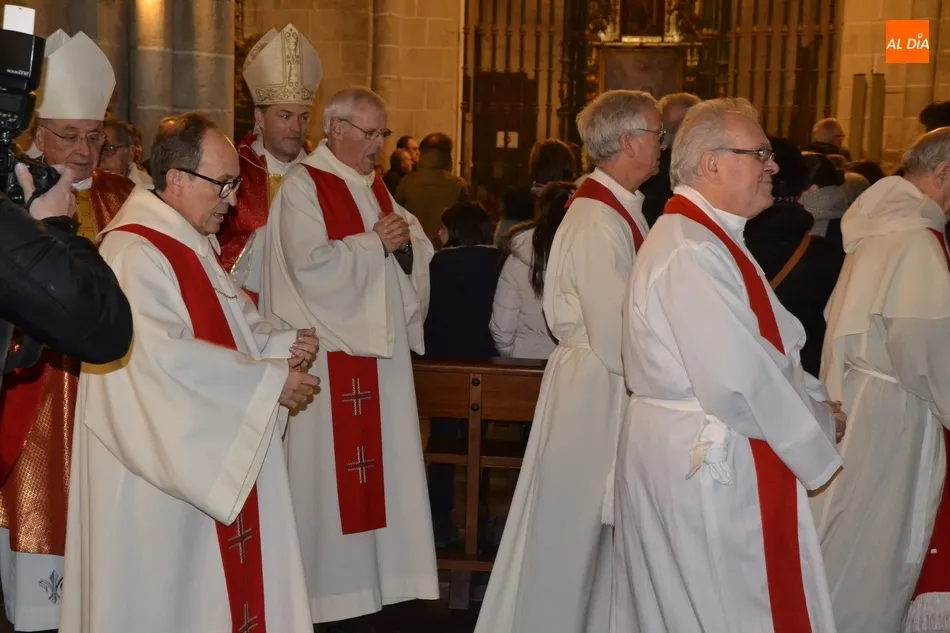 La Catedral de Santa María de Ciudad Rodrigo acogió en la tarde del sábado la misa de despedida de Raúl Berzosa Martínez como Obispo de la Diócesis Civitatense después de casi 8 años en el cargo (fue nombrado el 2 de febrero de 2011). Al mismo tiempo, la eucaristía en la Seo sirvió para despedir al que ha sido Administrador Apostólico con sede Plena durante los últimos 7 meses, Francisco Gil Hellín, que ha sido relevado por Jesús García Burillo, que desde este domingo asumirá ese cargo de Administrador Apostólico aunque con sede Vacante.