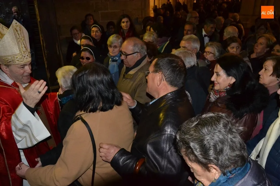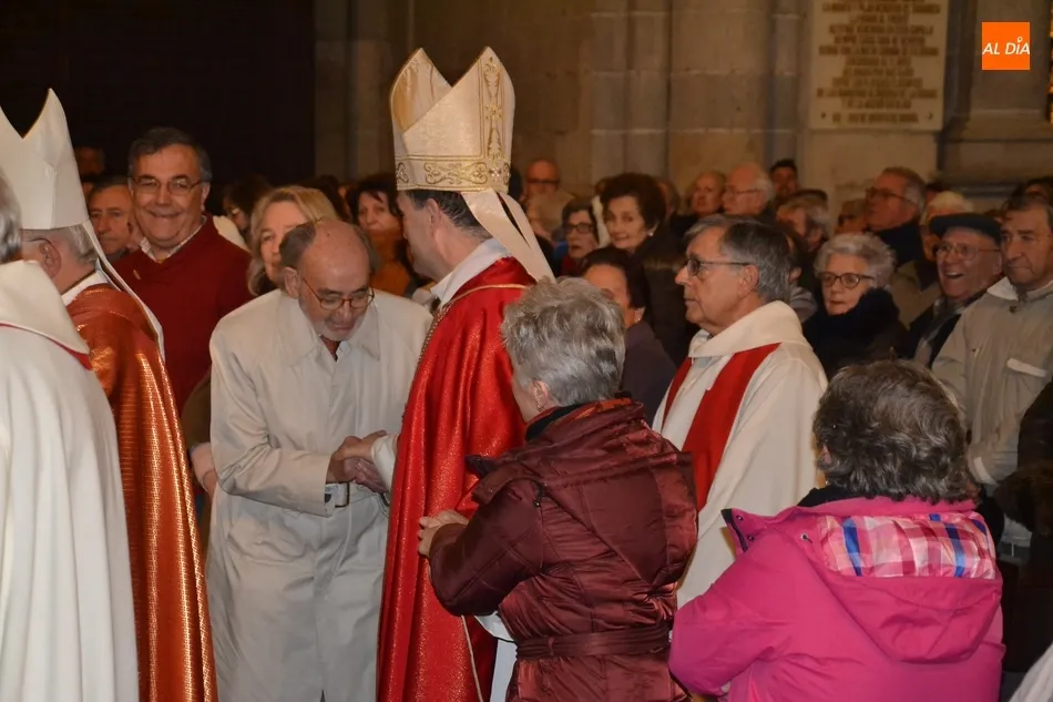 El ya Obispo Emérito de Ciudad Rodrigo estuvo unos 35 minutos despidiéndose uno por uno de todos los asistentes