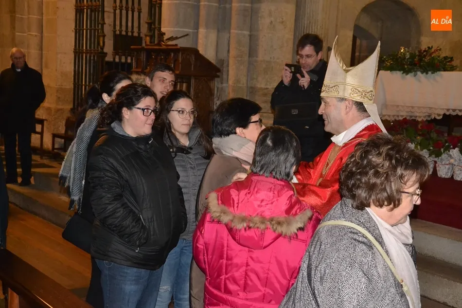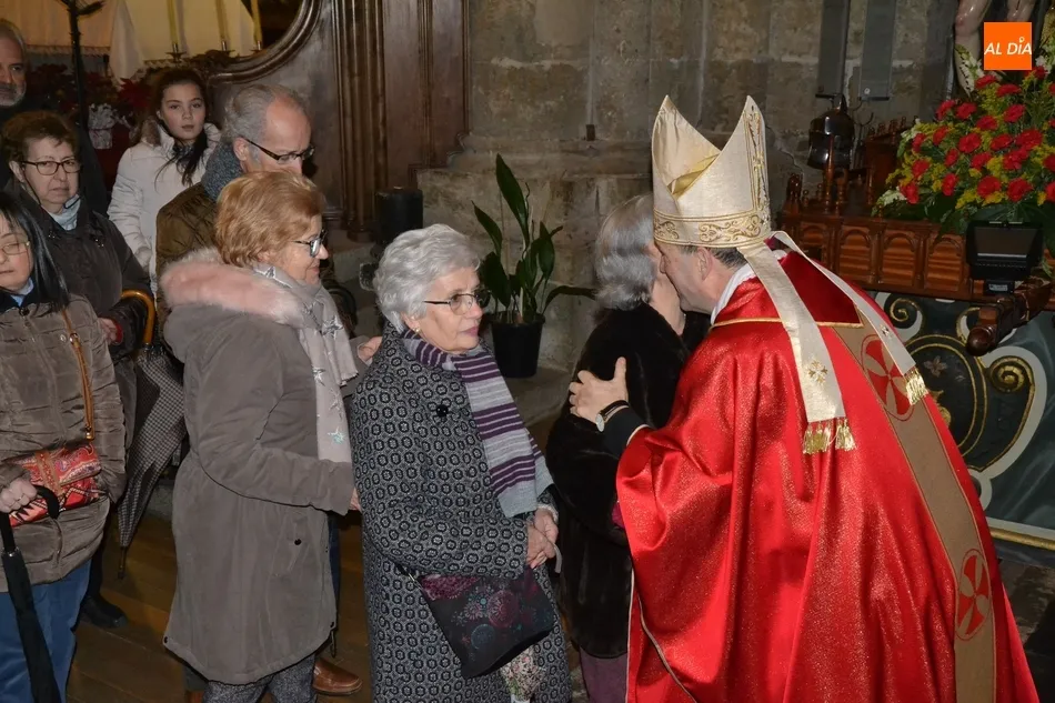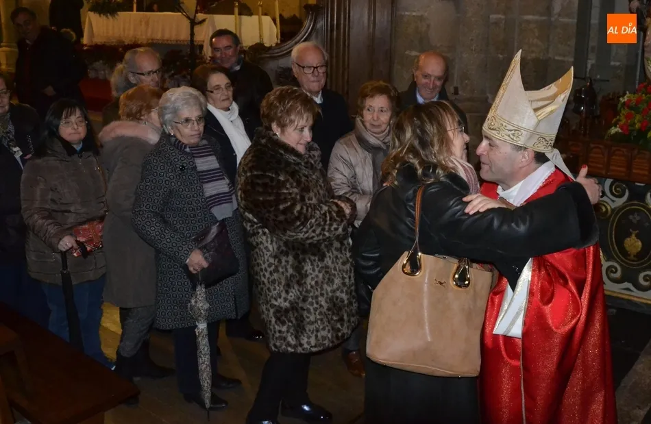 A continuación, todos aquellos que quisieron pudieron despedirse personalmente de Berzosa, en una larga ronda que duró 35 minutos. Durante la misma, hubo tiempo para bendecir a algún recién nacido, a algunos niños más, para las lágrimas de varios fieles, y también para la entrega de un christmas y de algún obsequio al Obispo Emérito.
