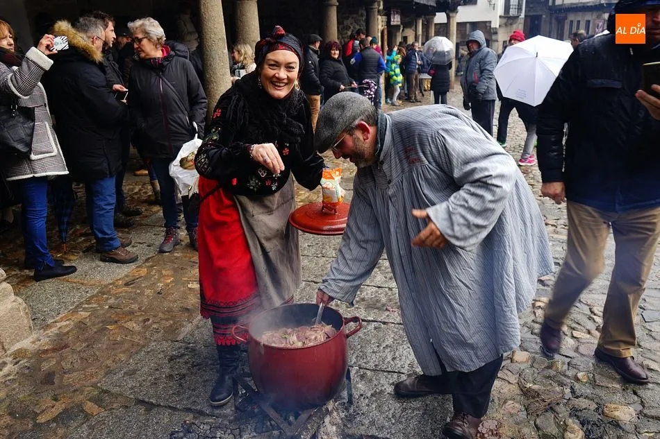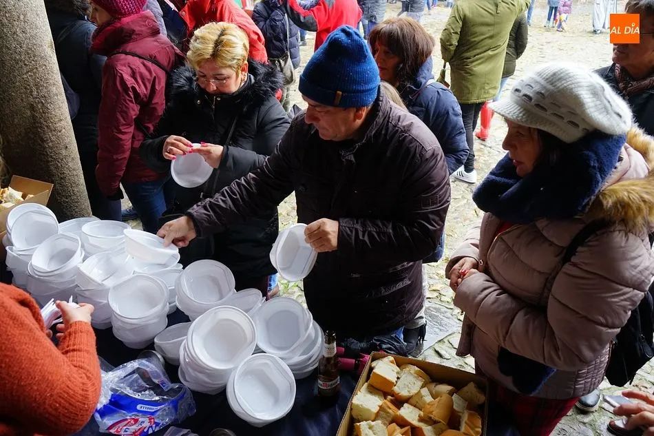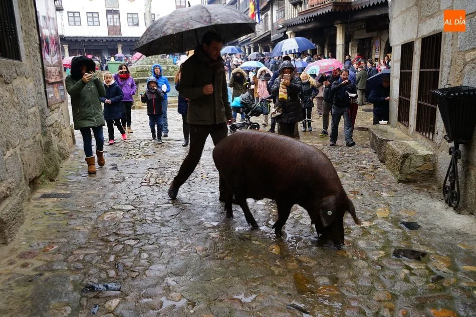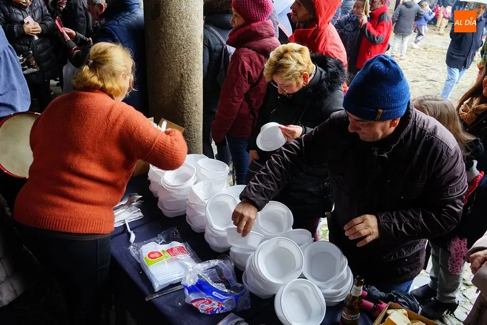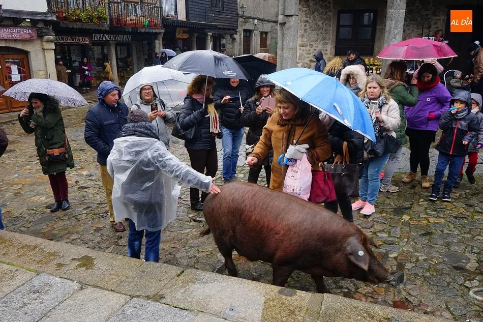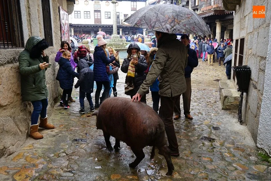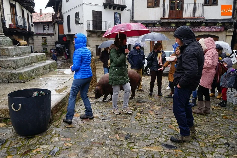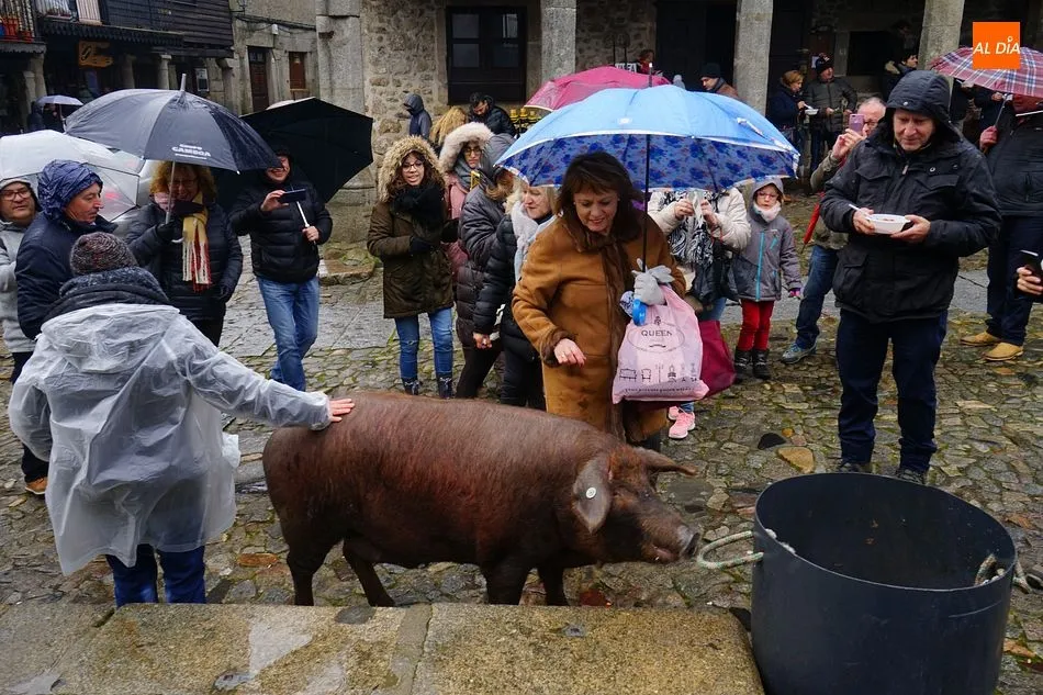 Precisamente el protagonista, el cerdo, apareció en la Plaza Mayor cuando ya estaban repartiendo las tradicionales degustaciones de chichas, hígado encebollado y morcilla a los presentes, que no perdieron oportunidad de tocar al animal y a hacerse una foto de recuerdo junto a él.