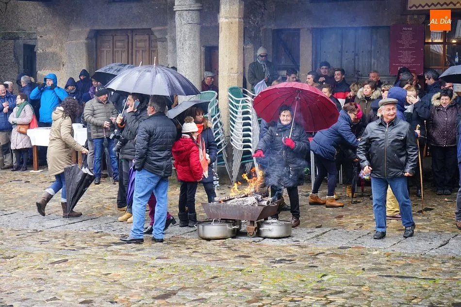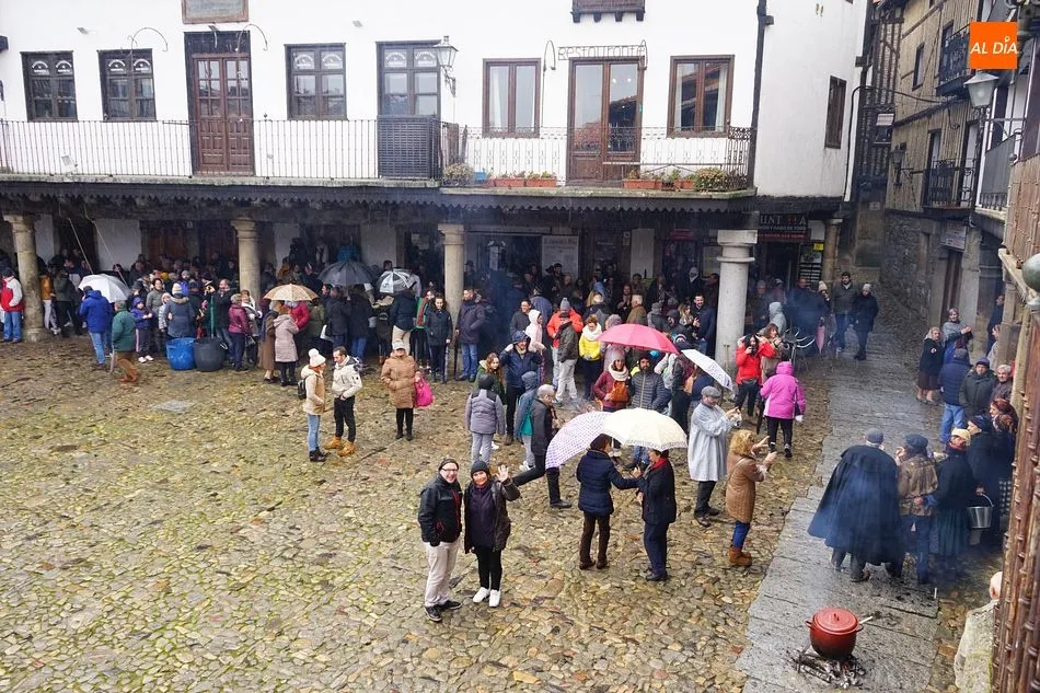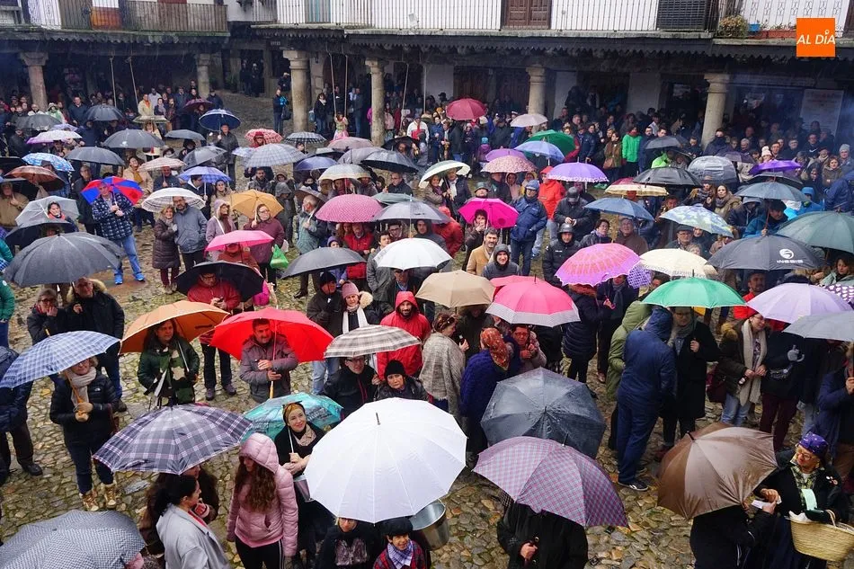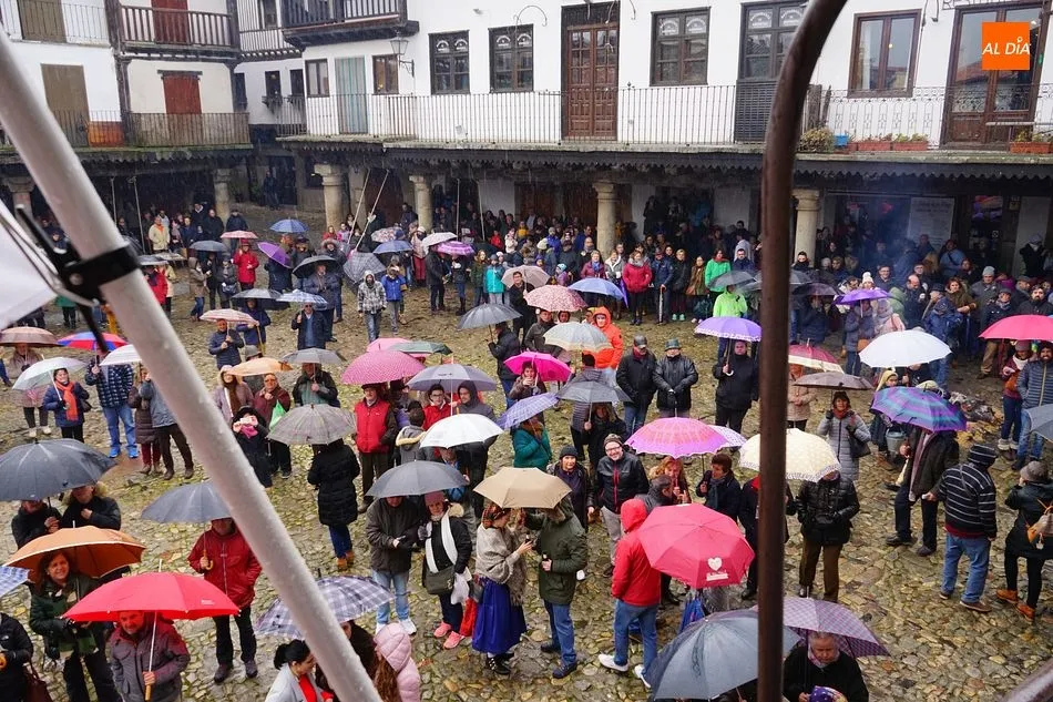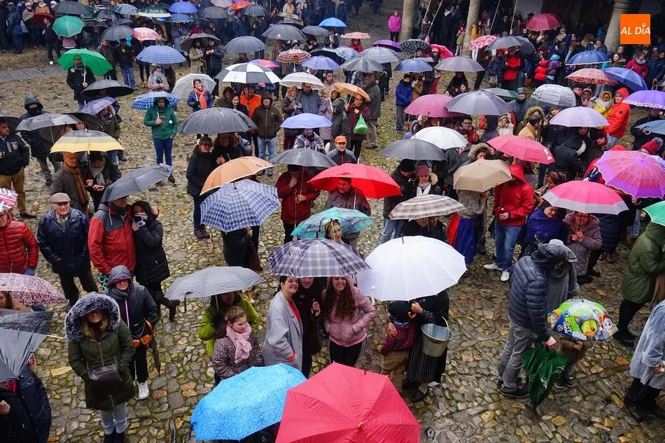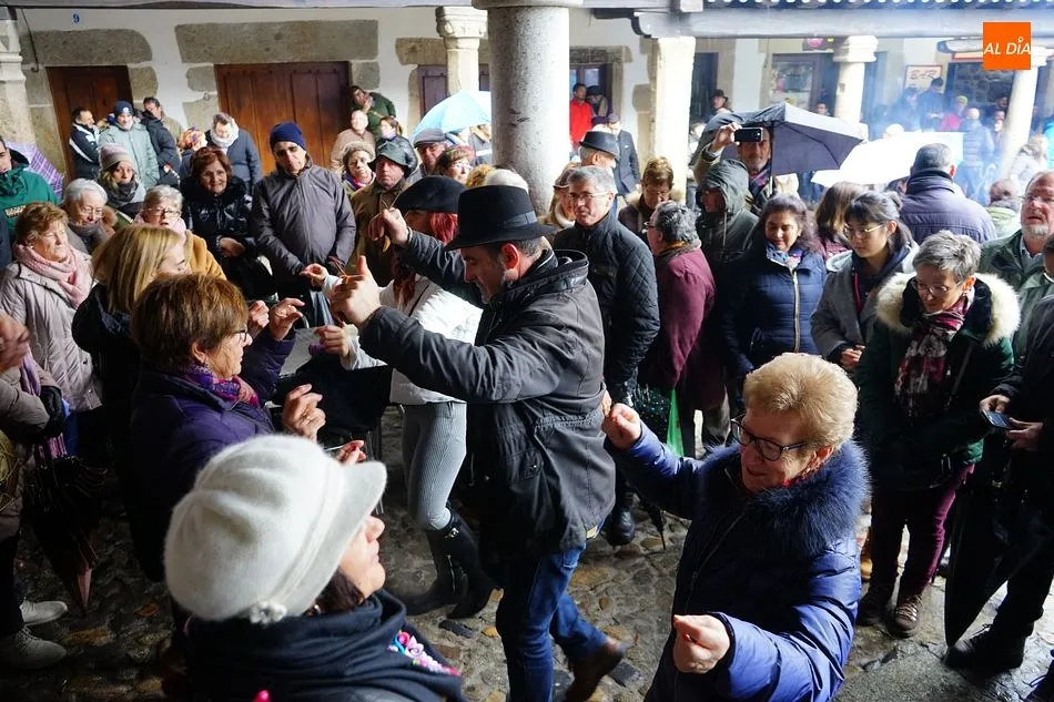 La lluvia y el frío fueron los dos invitados más comentados en la Plaza Mayor albercana, lugar que acogió los diferentes actos festivos, por ello, los soportales se llenaron de visitantes y vecinos de la localidad, que pese a la adversidad de los elementos no cesaron en sus tradicionales bailes al son de la gaita y el tamboril esperando la popular rifa. Desde el pasado verano los boletos se han vendido al precio de un euro, ya que la rifa es de carácter solidario.