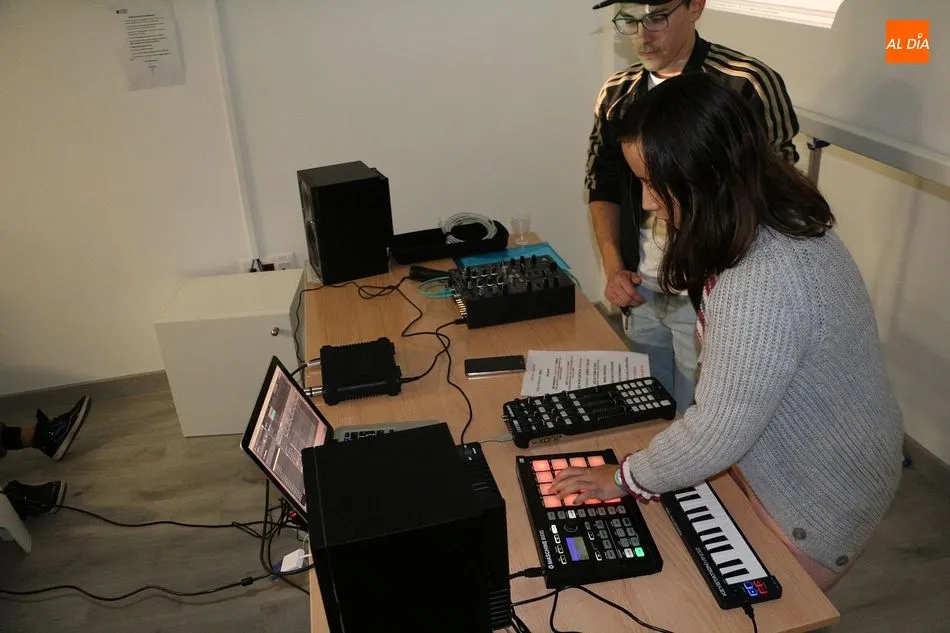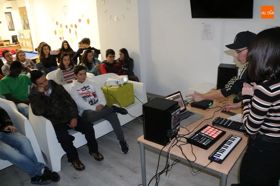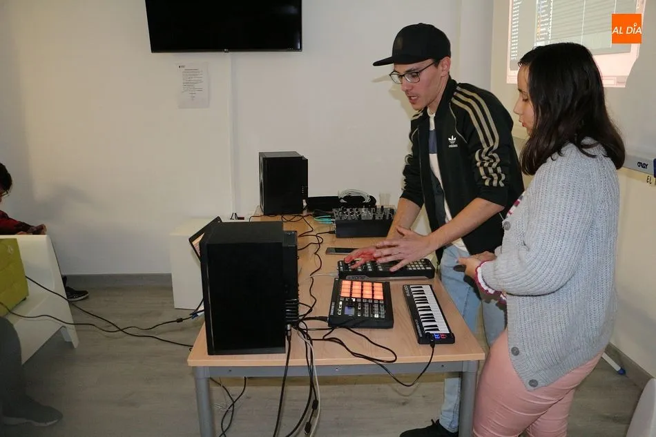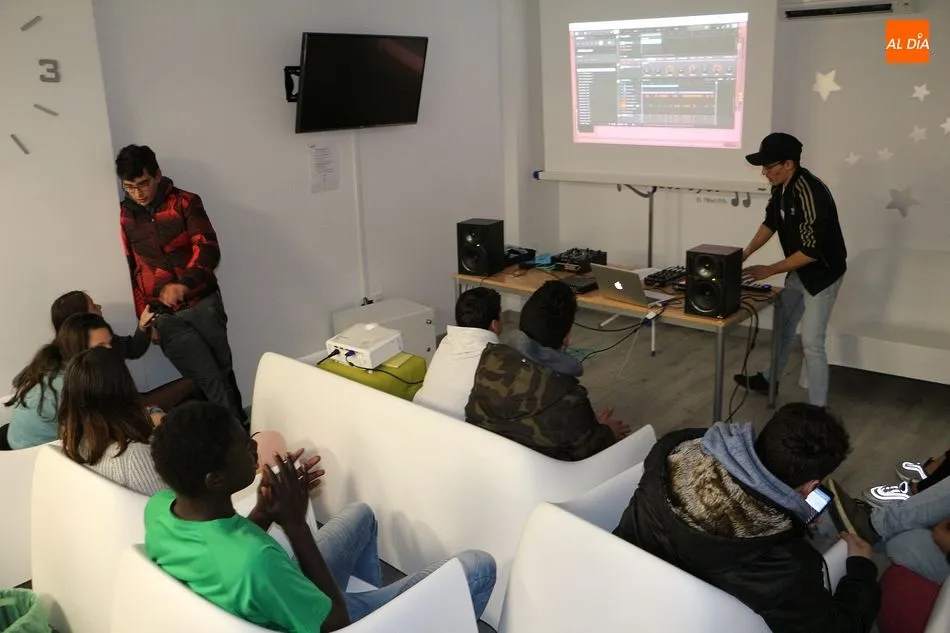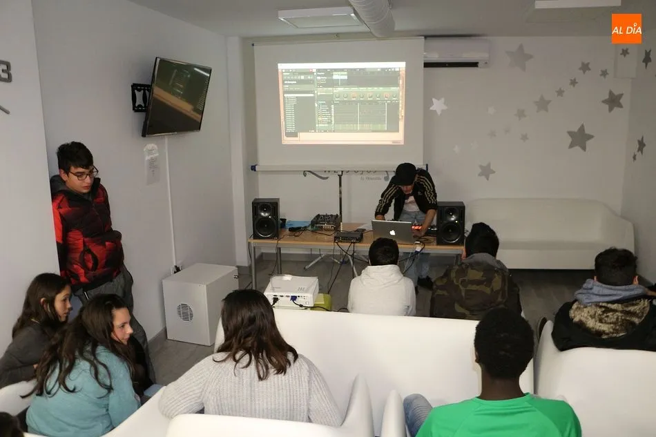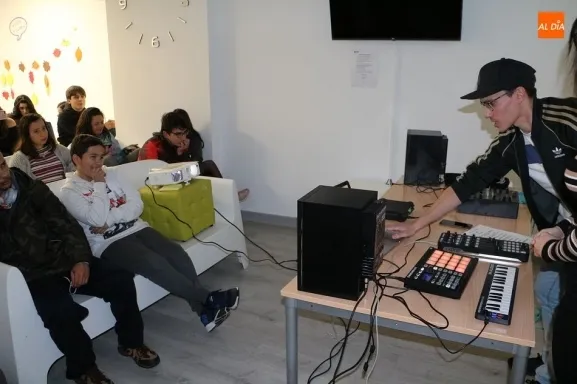 Los socios de Guijuelo Joven se han sumergido hoy en el mundo de la creación musical a través de los ordenadores. Más de cincuenta socios del centro joven de la villa han participado en las dos sesiones ofrecidas del taller de informática musical por el productor musical y DJ, Rubén Ruiz. Los jóvenes han podido ir añadiendo pistas utilizando cajas de ritmos, diferentes sintetiadores y controladores MIDI, elaborando melodías y ritmos que finalmente han conformado varias piezas musicales creadas en el mismo moento. Se ha tratado de una de las actividades destacadas del mes en este servicio municipal