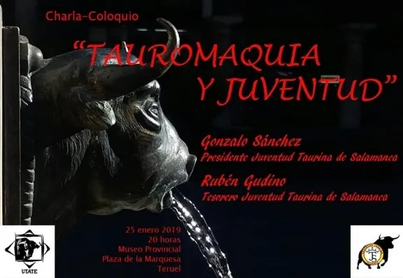 La Asociación Juventud Taurina de Salamanca estará presente el día 25 de enero de 2019 en la charla ? coloquio que organiza la asociación de abonados y aficionados de la plaza de toros de Teruel (UTATE). En ella intervendrán los máximos responsables y fundadores de la asociación, Gonzalo Sánchez García y Rubén Gudino González.