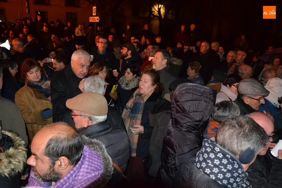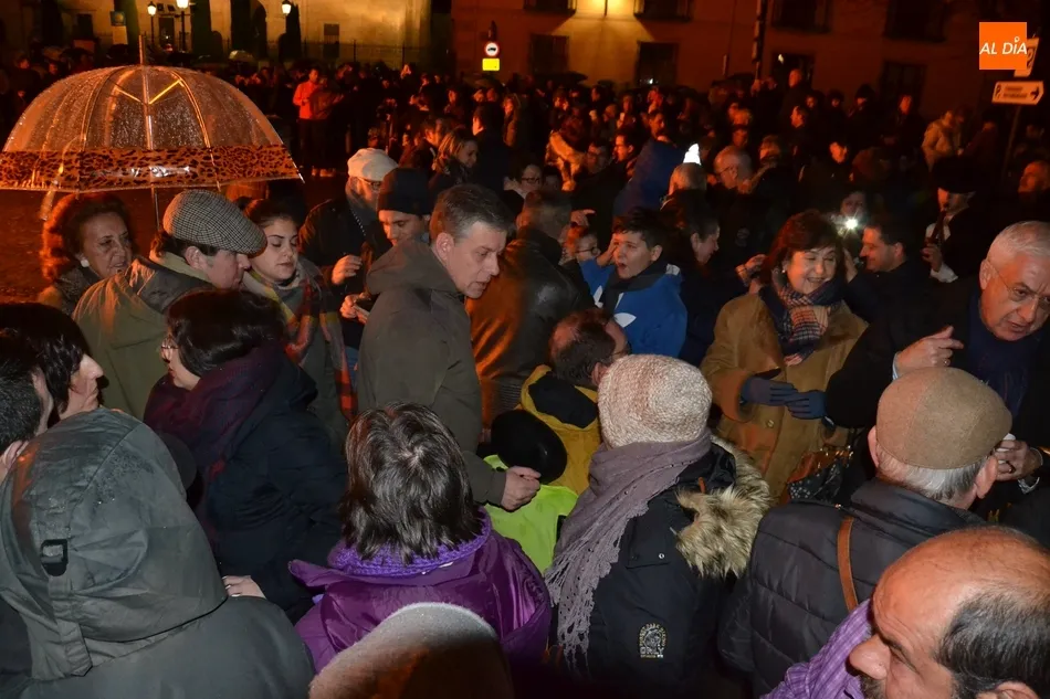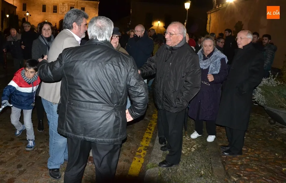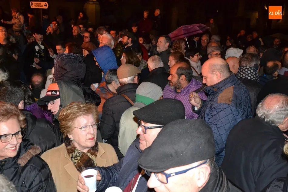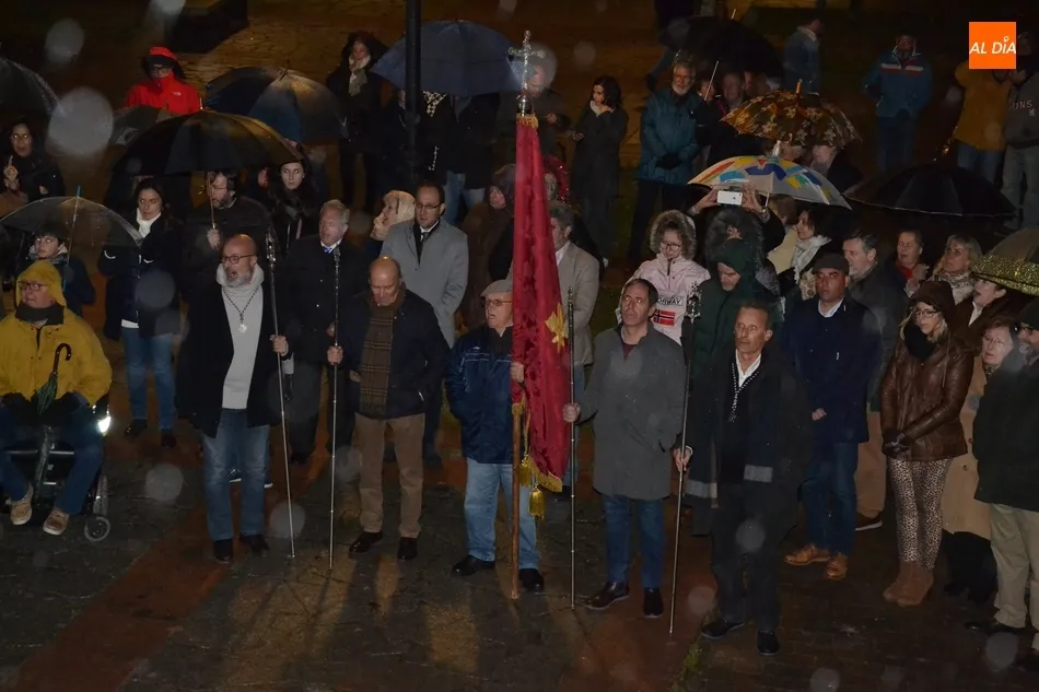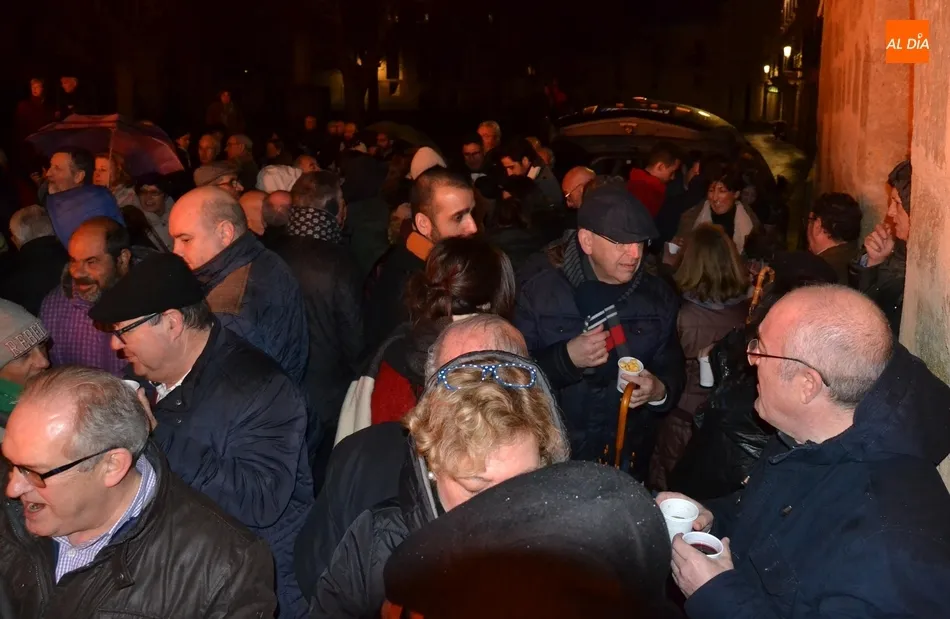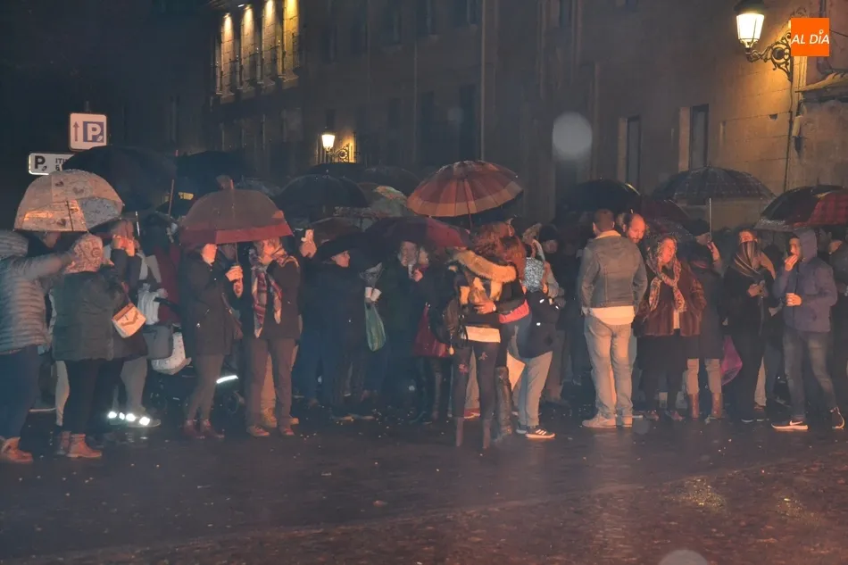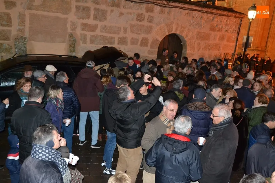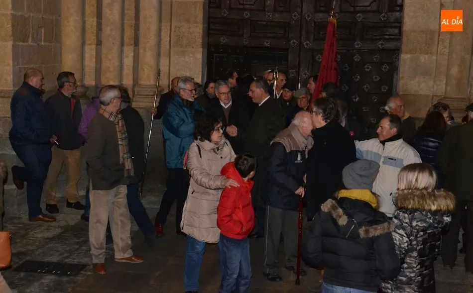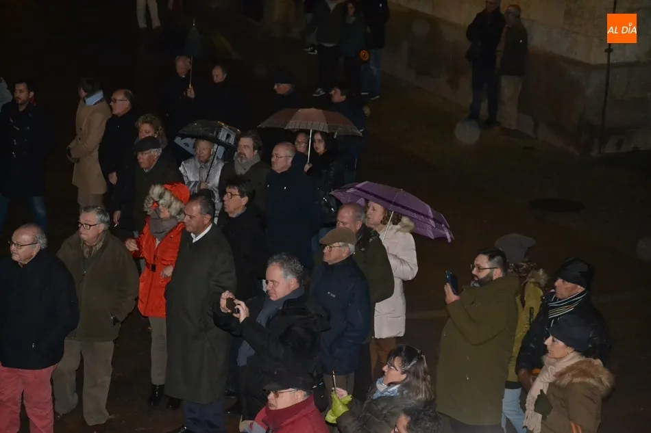 Como previamente no había llovido, hacía una buena temperatura, y además era sábado, varios cientos de mirobrigenses se fueron congregando -la mayoría paraguas en mano- en torno a la Catedral de Santa María, a la espera de que concluyera la última sesión de la novena en honor a San Sebastián, que comenzó el viernes de la semana pasada. Sobre las 20.15 horas concluyó la celebración en el interior, empezando los actos en la calle.