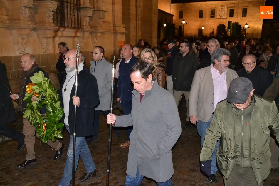 Como en los años anteriores, el acto en la Brecha se inició con un toque de oración con corneta, al que siguió la lectura por parte del presidente de la Cofradía, Alipio Carlos Martín, de una reflexión en torno al sentido de la Ofrenda, recordando que fue un 19 de enero (de 1812) cuando Lord Wellington liberó la ciudad de las tropas francesas, de ahí que se homenajease a las víctimas de la Guerra de la Independencia.