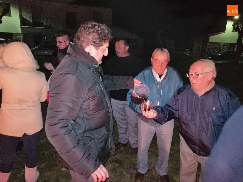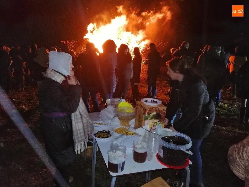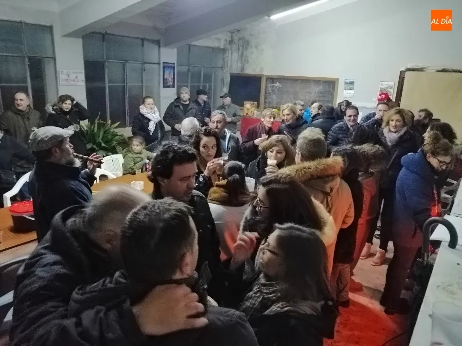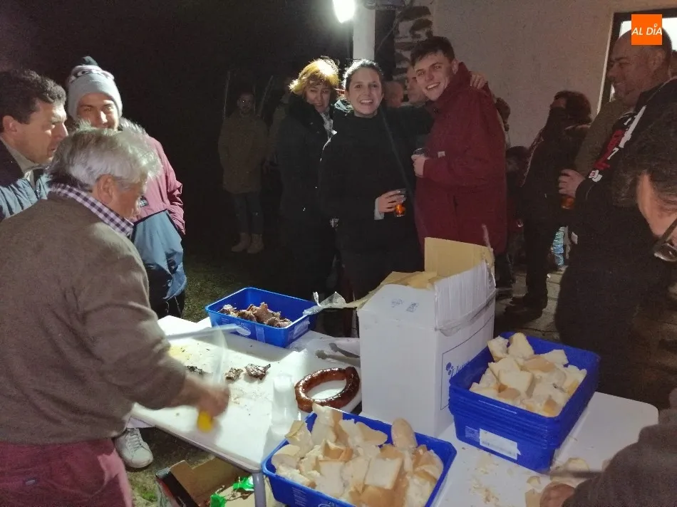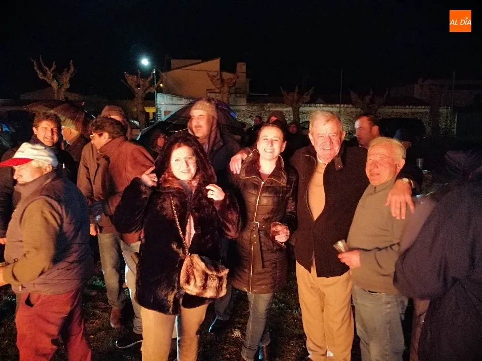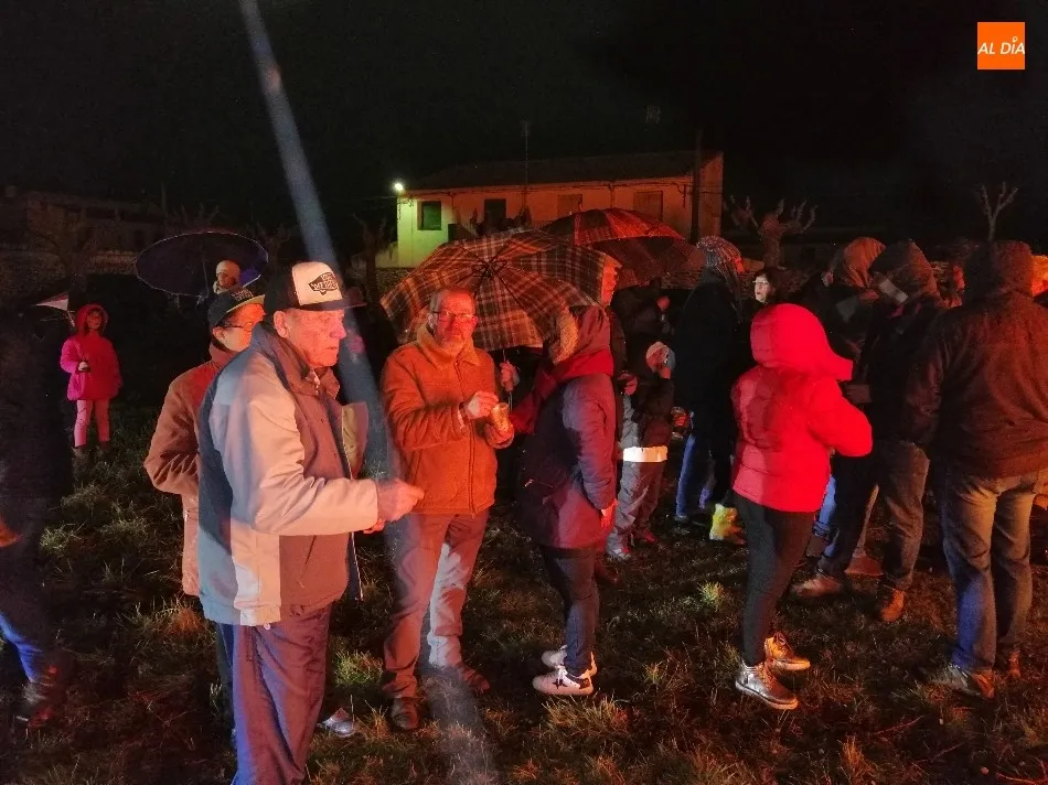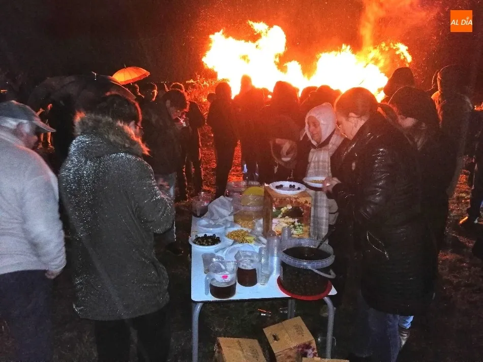 Como en el caso del núcleo urbano de la ciudad, la lluvia hizo acto de presencia durante la hoguera, obligando a trasladar al interior de las antiguas escuelas el convite a base de panceta, costilla y chorizo, del que disfrutaron un buen número de vecinos y amigos del agregado. Entre los presentes estuvieron varios concejales de Ciudadanos y del Partido Popular, así como el diácono Efraín Peinado.