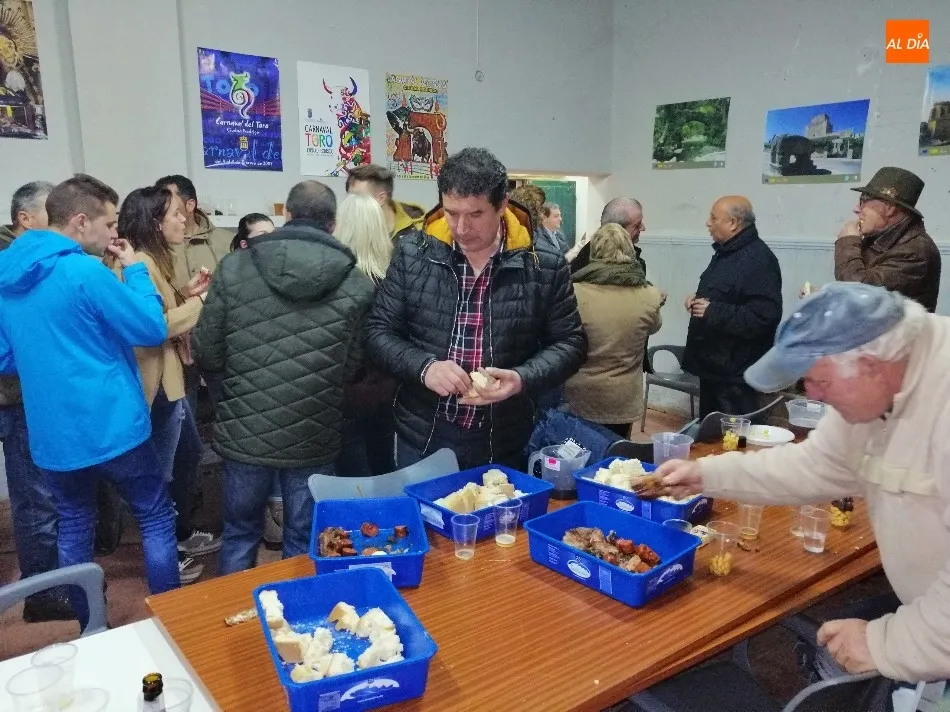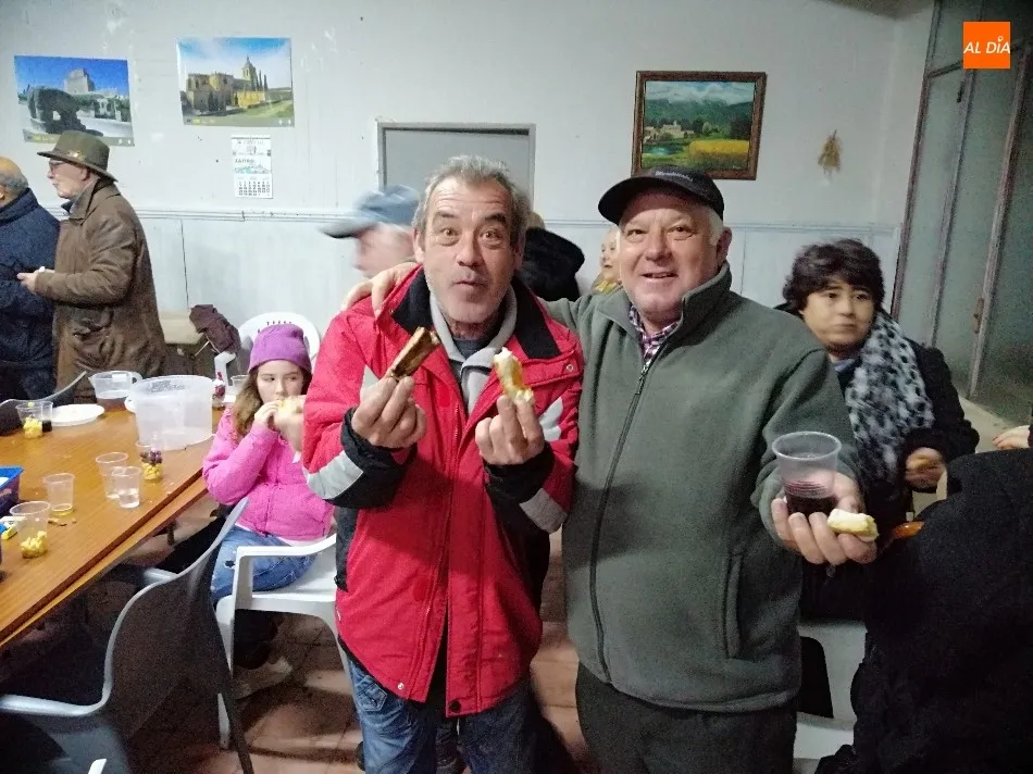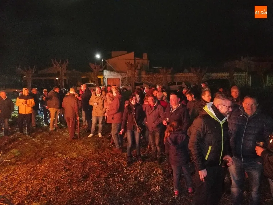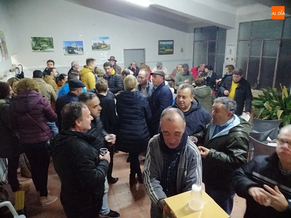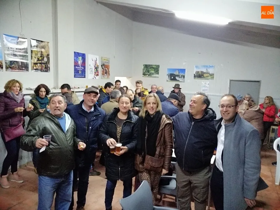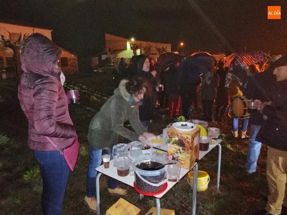 Como en el caso del núcleo urbano de la ciudad, la lluvia hizo acto de presencia durante la hoguera, obligando a trasladar al interior de las antiguas escuelas el convite a base de panceta, costilla y chorizo, del que disfrutaron un buen número de vecinos y amigos del agregado. Entre los presentes estuvieron varios concejales de Ciudadanos y del Partido Popular, así como el diácono Efraín Peinado.