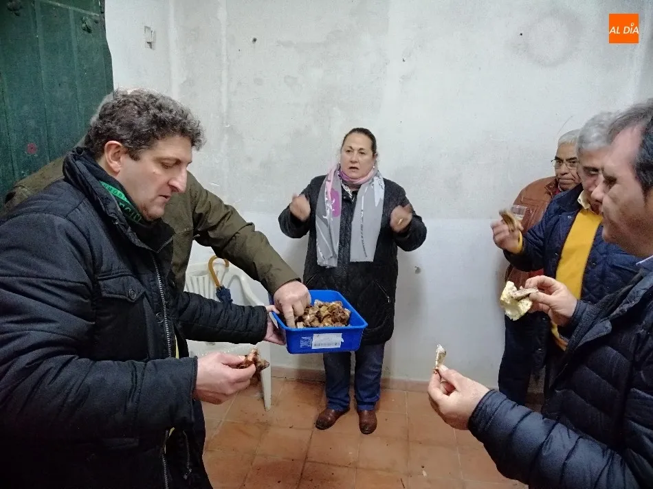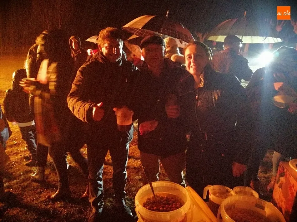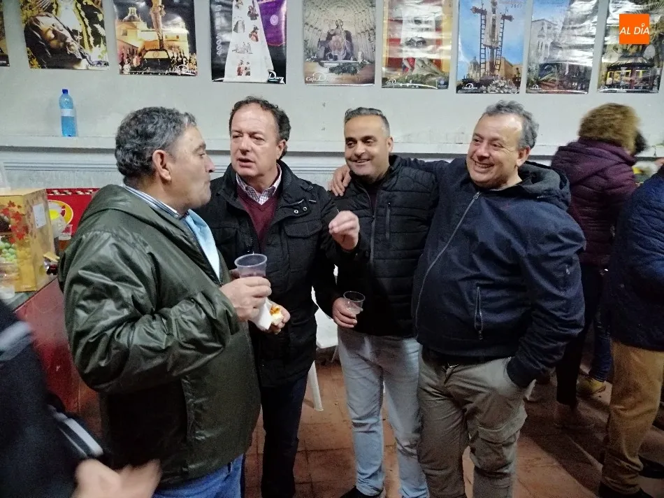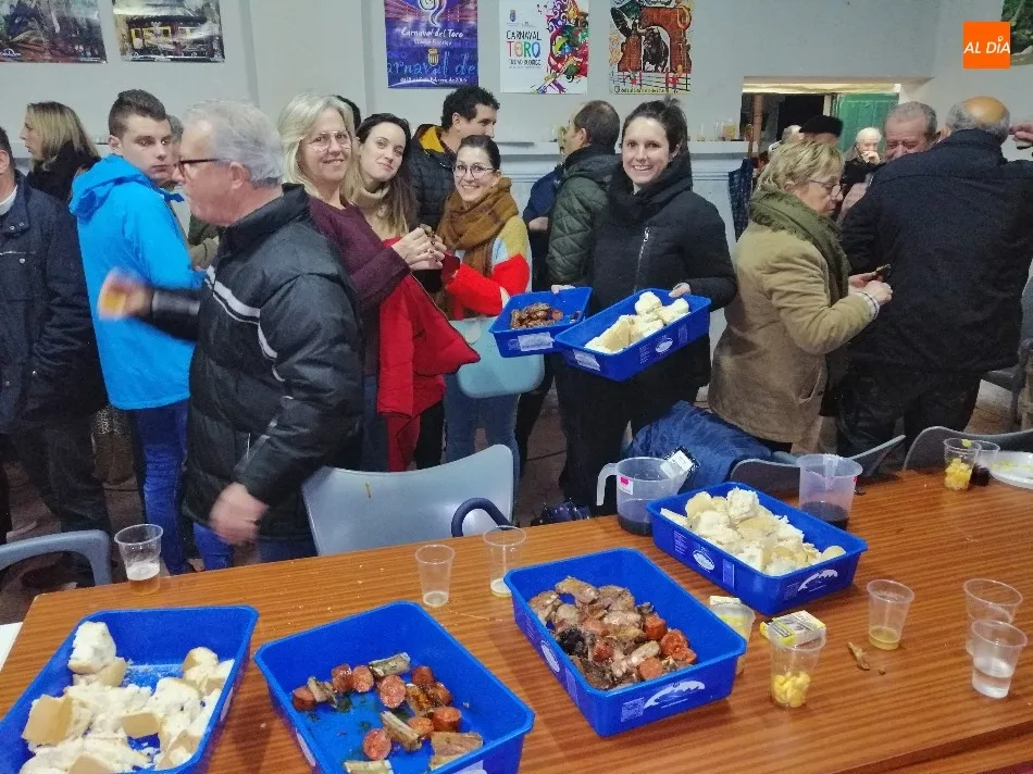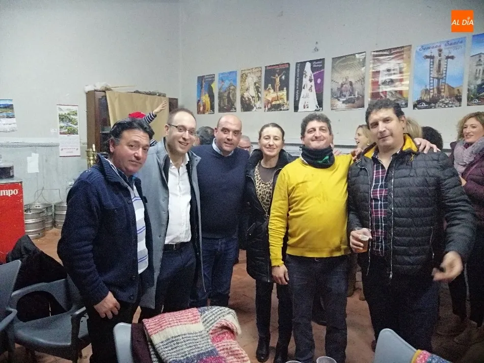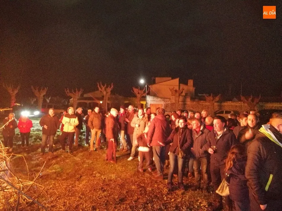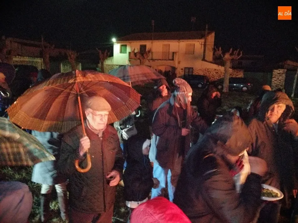 Como en el caso del núcleo urbano de la ciudad, la lluvia hizo acto de presencia durante la hoguera, obligando a trasladar al interior de las antiguas escuelas el convite a base de panceta, costilla y chorizo, del que disfrutaron un buen número de vecinos y amigos del agregado. Entre los presentes estuvieron varios concejales de Ciudadanos y del Partido Popular, así como el diácono Efraín Peinado.