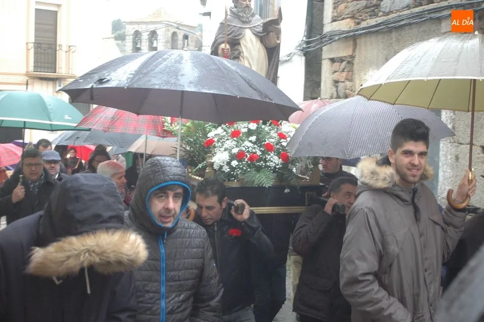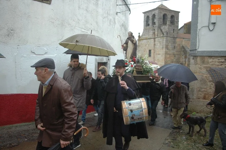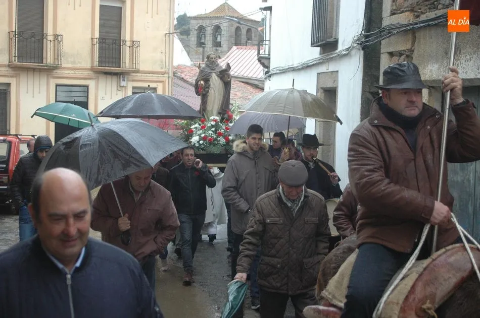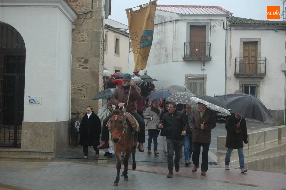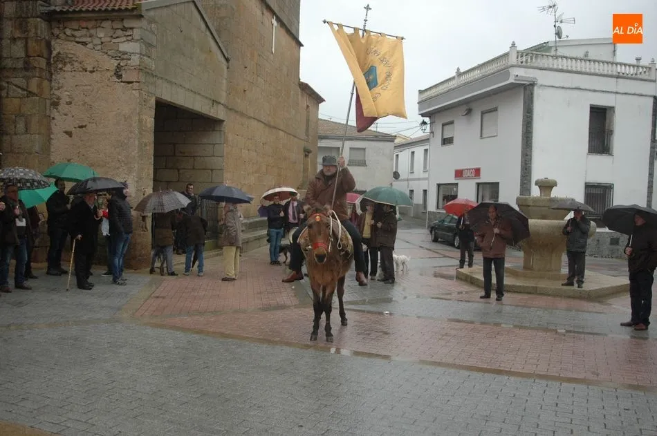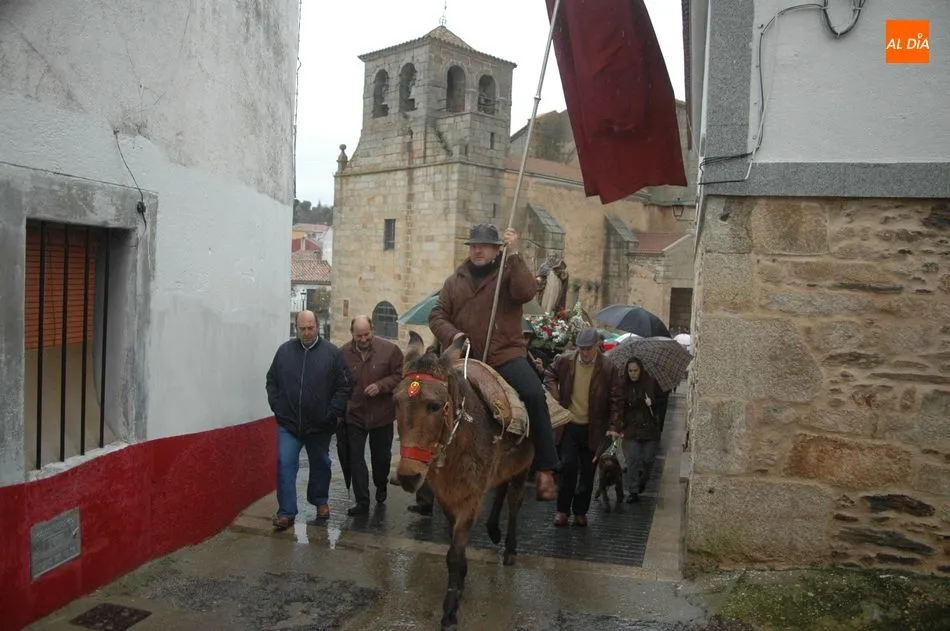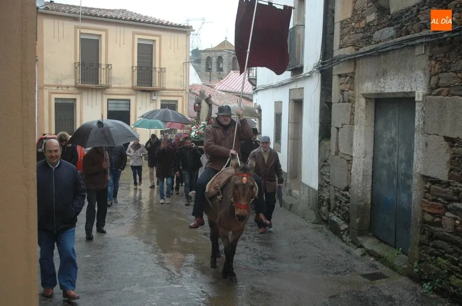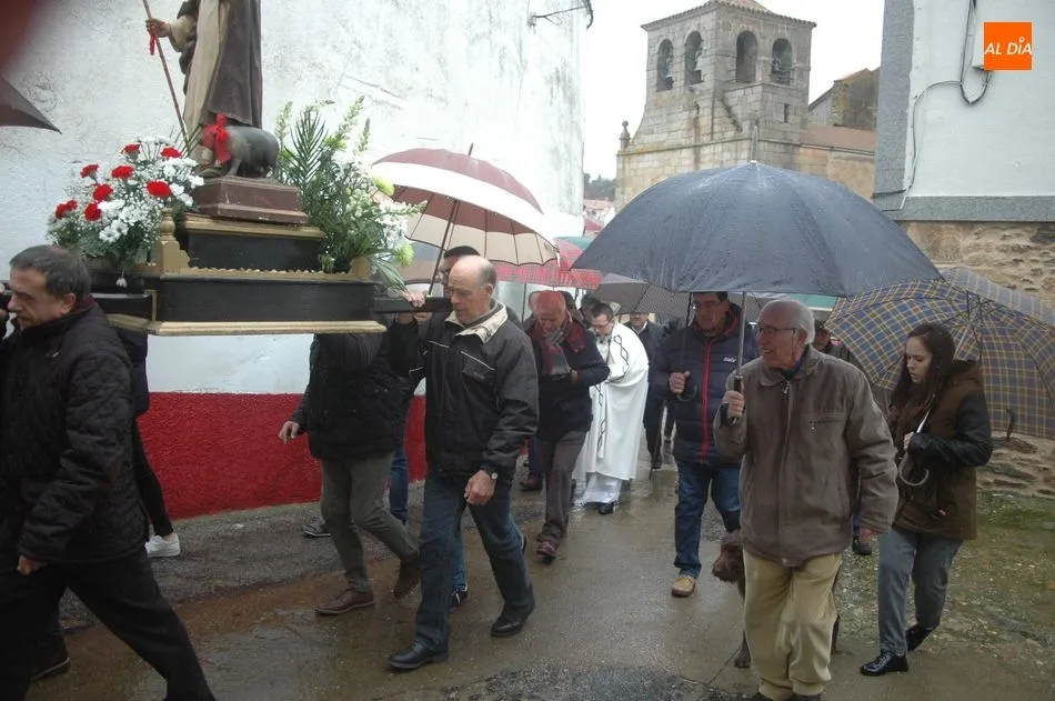 Tras la homilía, y a pesar de la lluvia, San Antón salía de la iglesia acompañado de los vecinos y el abanderado, enlomado sobre una caballería, en procesión camino hacia la ermita de San Lorenzo donde el sacerdote, Miguel Ángel García Miguel, procedió a la bendición de los animales, al que acudieron varios perros, mascota por excelencia en esta localidad, acompañando a sus dueños.