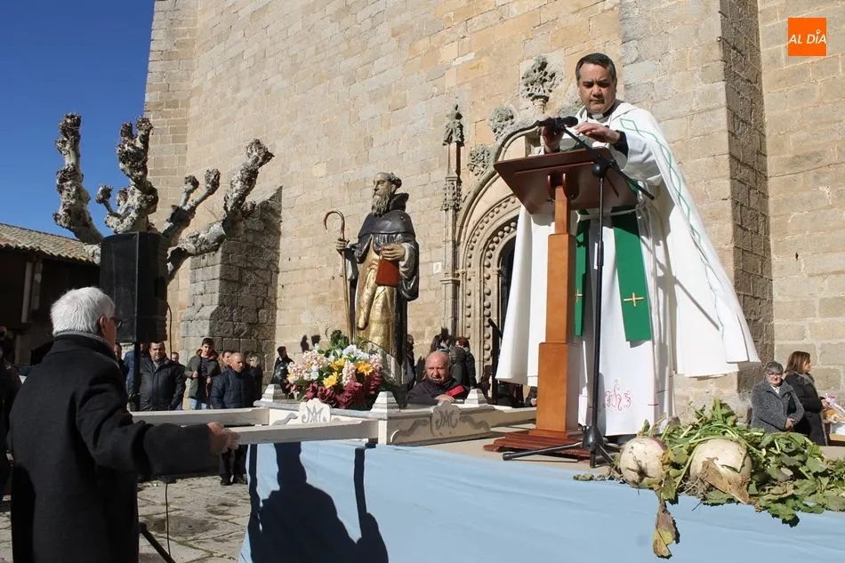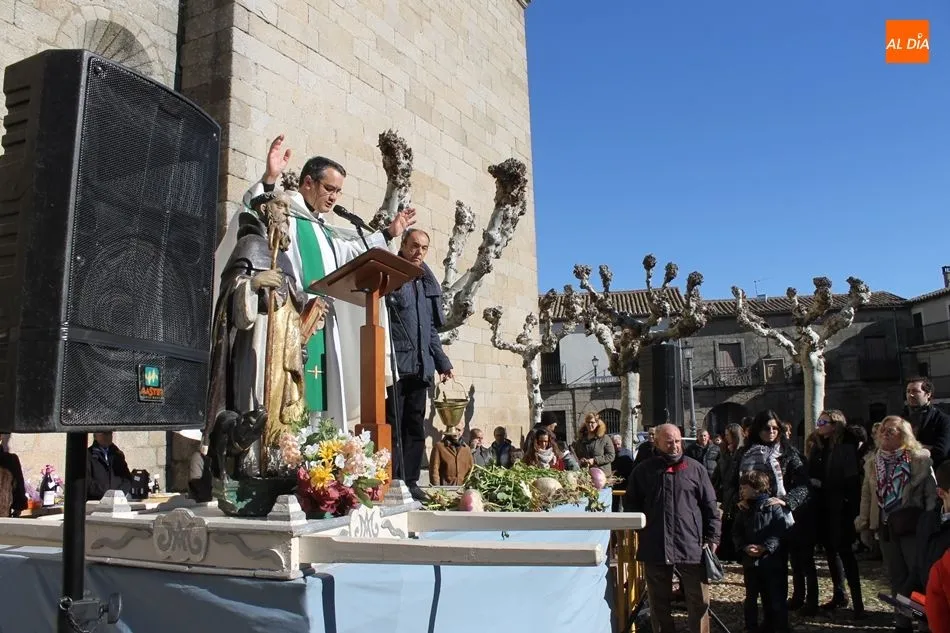 Ledesma es, un enero más, escenario de la Fiesta de San Antón, con una animada subasta tras la celebración de la Eucaristía en la Iglesia de Santa María La Mayor y la tradicional bendición de las mascotas acompañadas de sus dueños en presencia de la imagen de San Antón. La Plaza Mayor, en una jornada festiva en la que el frío ha querido dar también una pequeña tregua, se ha convertido en escenario de esta singular subasta que en su octava edición ha superado los 2.700 euros de recaudación (2.710), de los cuales 1.450 euros corresponden a la venta de las papeletas para el sorteo del cebón y el resto de los lotes subastados. Una tradición recuperada del siglo XV y organizada por la parroquia, Ayuntamiento y asociaciones de la villa, y cuya recaudación íntegra se destina a la promoción de la Semana Santa de Ledesma.