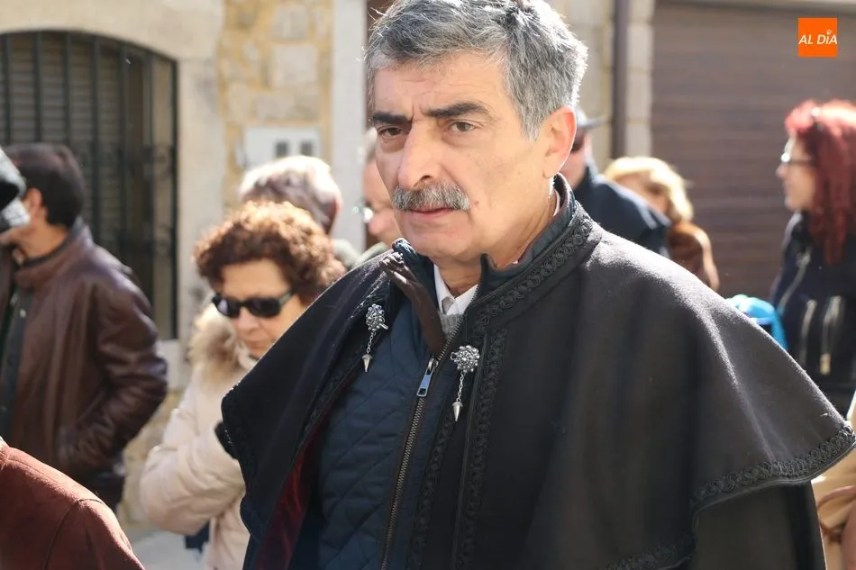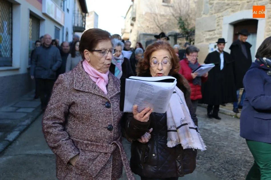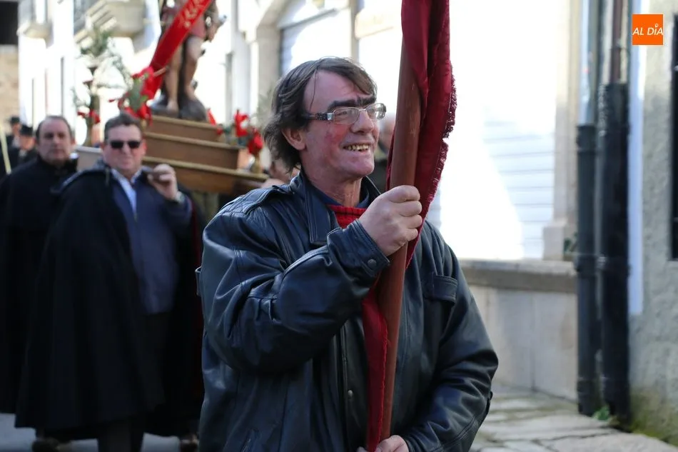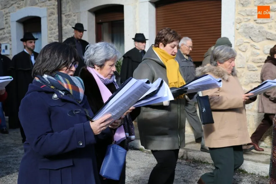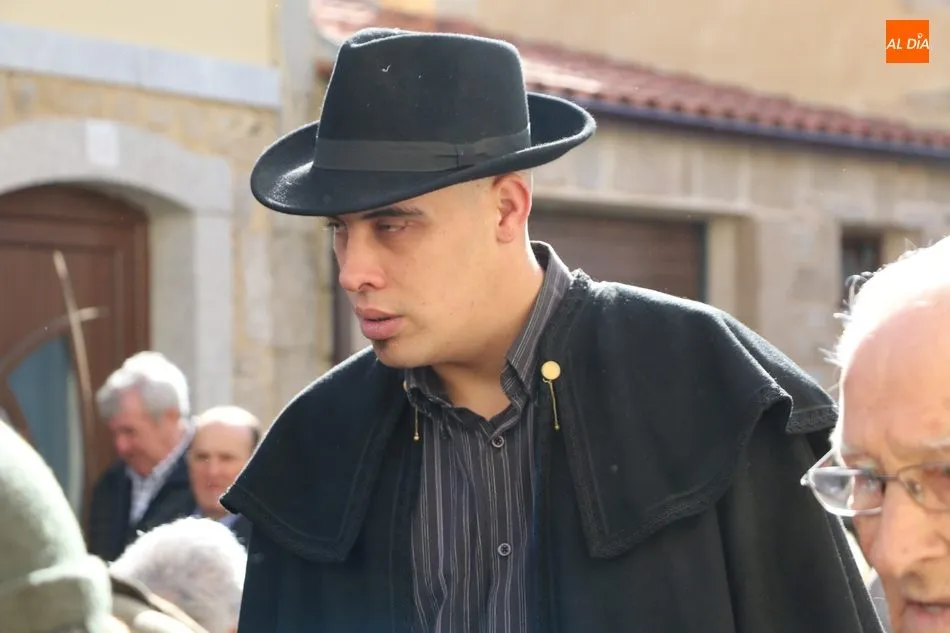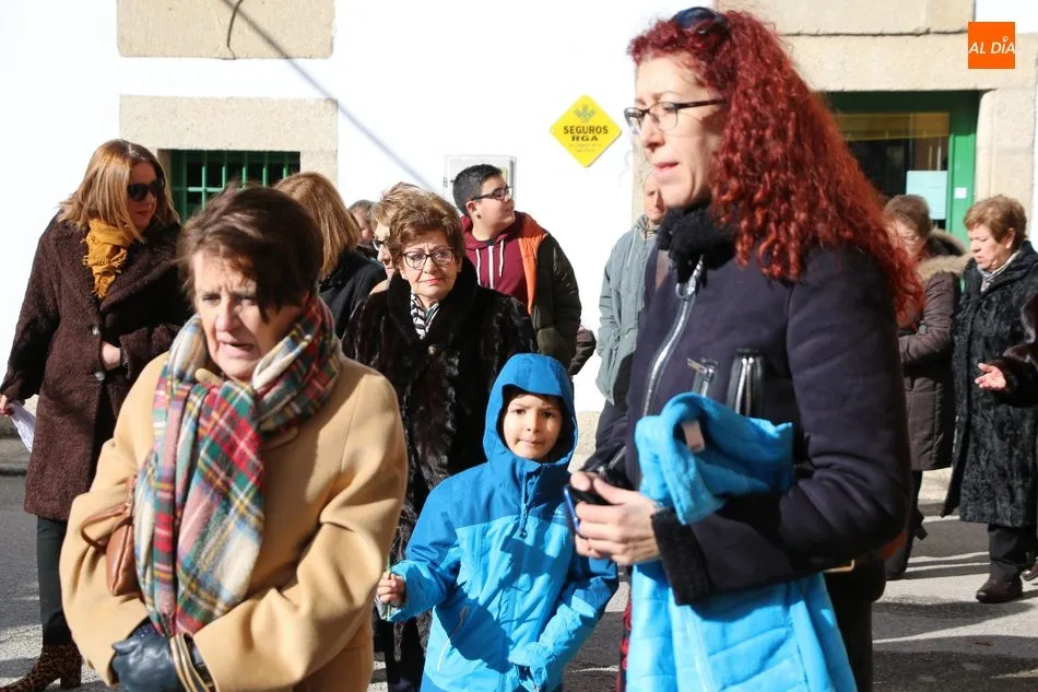 El acto comenzaba pasadas las 12.45 horas amenizado por sones de la gaita y el tamboril, solo interrumpido por momentos ante los cánticos de las mujeres que seguían a la comitiva de capas negras guiada por sus mayordomos.