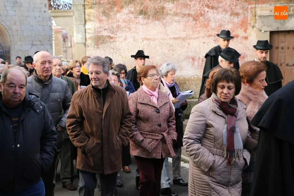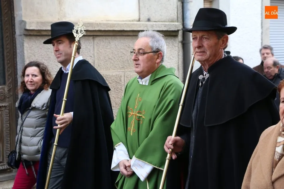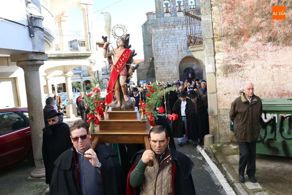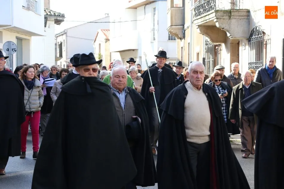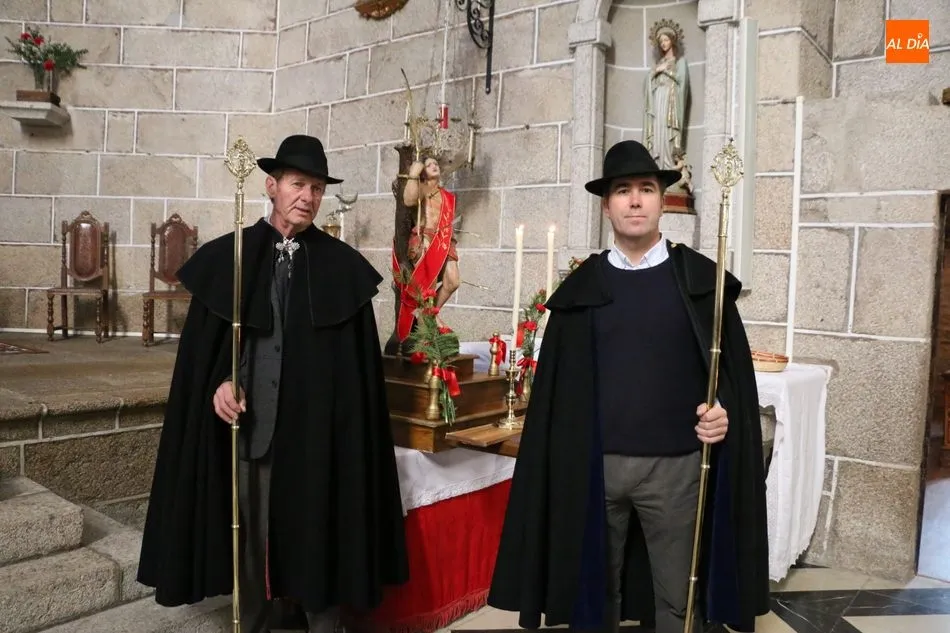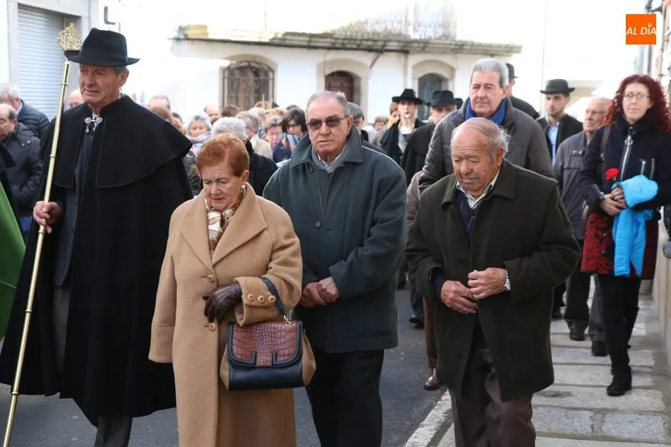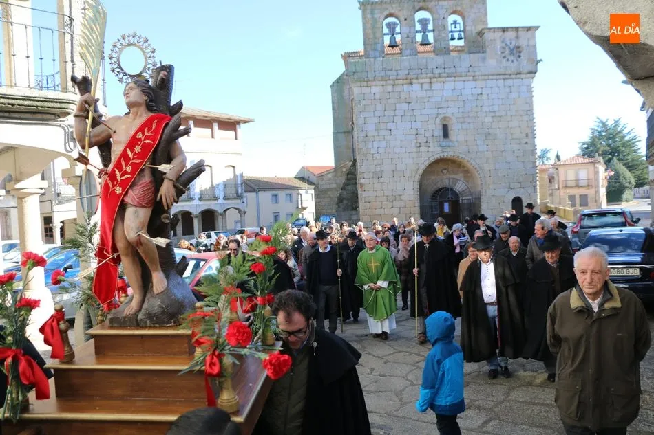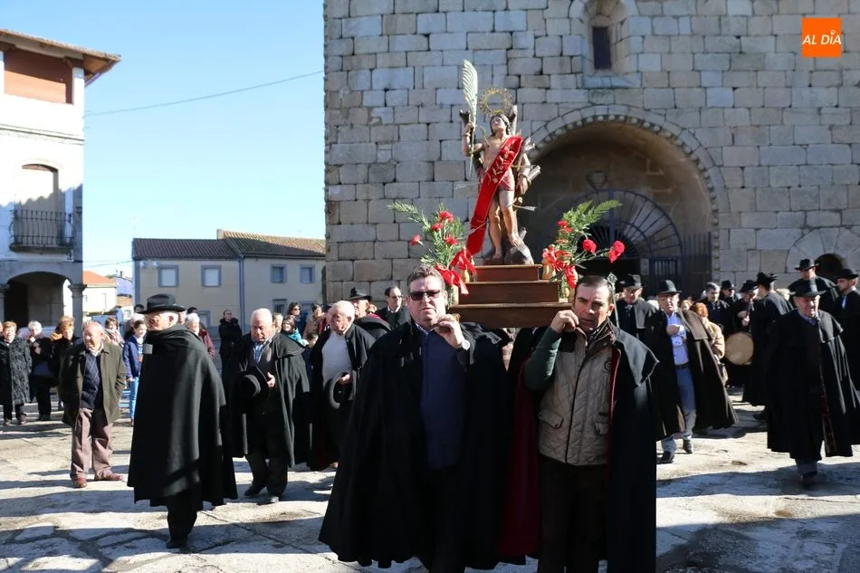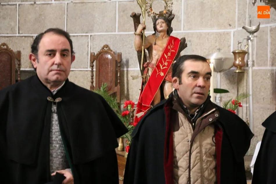 Los cofrades de ?Nuestro Glorioso Santo San Sebastián?, congregación formada en Villavieja de Yeltes en el año 1.812, volvieron a lucir este sábado sus capas negras y sombreros de media ala con motivo de la celebración del día de su Patrón. Antes de la misa, los cofrades acompañaban a los mayordomos Moisés Bernal García y Ángel Abrahám Moro en la procesión del Santo por las calles de la localidad.