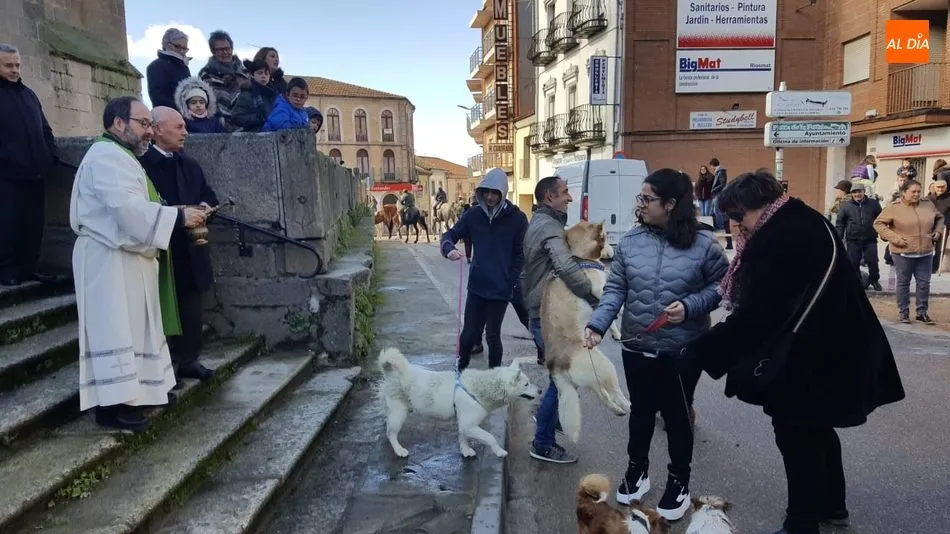 Una vez celebradas las carreras y con el cuerpo alegre a base de licores, aguardiente, pastas y perrunillas, los participantes regresarán a las 13.30 horas a la Plaza de España para asistir a la bendición de animales tras la finalización de la misa, acto al que además de los caballos acudían las mascotas más populares, en su mayoría perros, aunque no faltó alguna que otra singular.