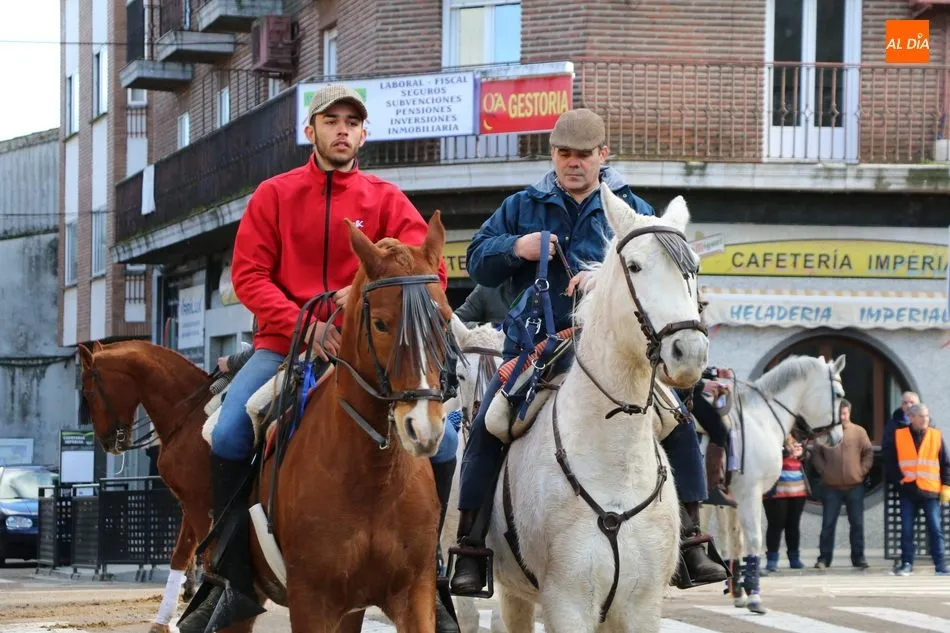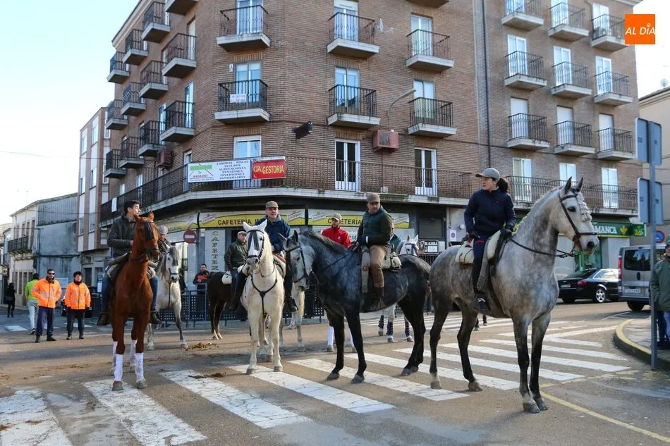 Una quincena de caballistas, entre los que se encontraban cuatro jóvenes amazonas, participaron en los actos de la fiesta de San Antón, celebración que encuentra en Vitigudino un significado más allá del estrictamente religioso, pues en este lugar hace 543 años se libró una batalla que cambiaría el curso de la historia.