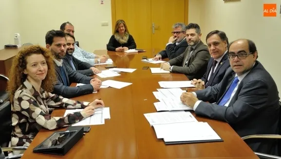 Primera reunión de trabajo con Carlos García Carbayo, al que Gómez Bueno califica como ?alcalde interino, tras la huida de Fernández Mañueco?