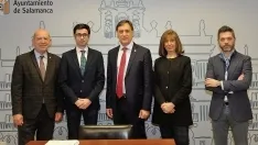 El alcalde de Salamanca, Carlos García Carbayo, acompañado por los tenientes de alcalde del Gobierno Municipal del Partido Popular, ha mantenido un encuentro con el Grupo Socialista, continuando con la ronda de contactos con los grupos de la oposición representados en el Ayuntamiento.