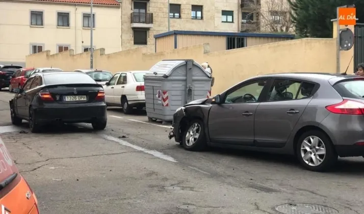 Dos turismos han chocado esta mañana, unos minutos antes de las 13.00 horas, cuando circulaban por el cruce de las calles La Alberca y Santa Marta, en el barrio de San Bernardo.