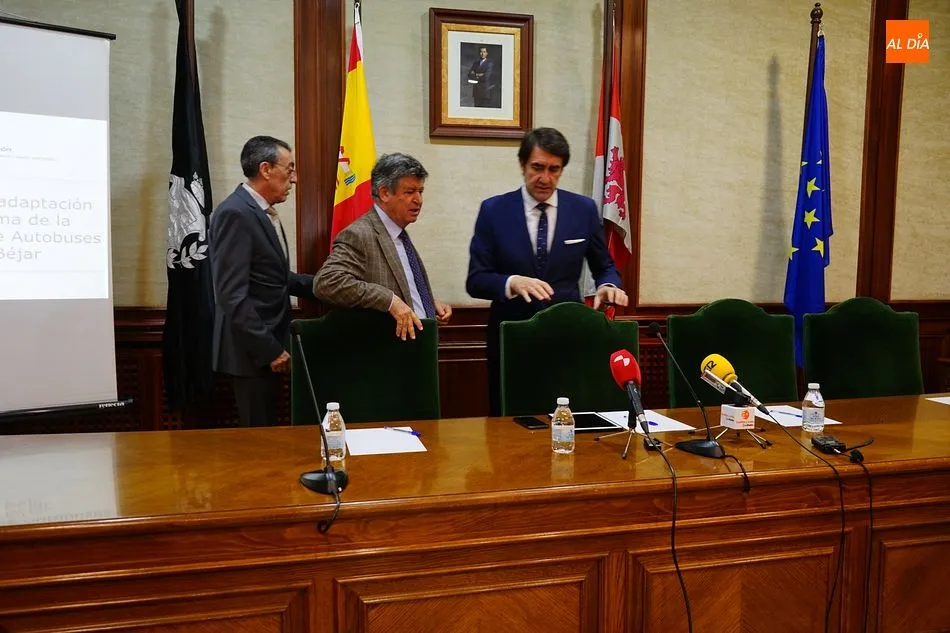 Béjar ha recibido esta mañana la visita del consejero de Fomento de la Junta de Castilla y León, Juan Carlos Suárez-Quiñones, que ha presentado el proyecto de remodelación de la estación de autobuses de la ciudad. Ha sido recibido en el Ayuntamiento por el alcalde, Alejo Riñones, los concejales y un grupo de vecinos, interesados por conocer las novedades de las instalaciones, además del delegado de la Junta en la provincia, Bienvenido Mena.