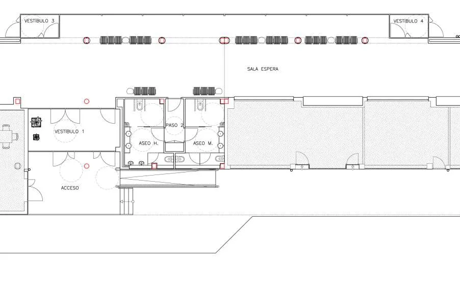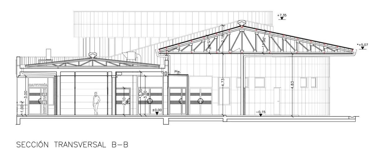 Una de las actuaciones más importantes será la cubierta plana actual de la zona de locales comerciales, que será sustituida por una cubierta inclinada con chapa prelacada sobre una estructura metálica. Se retirará la cubierta de la zona de dársenas y se instalará un panel sándwich, así como la limpieza y sellado de la cubierta de chapa de la marquesina en la misma zona.