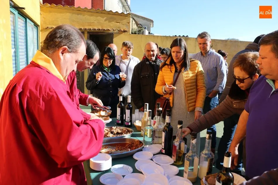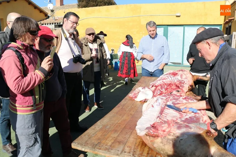 Antes de que juan Carlos López Pinto se sentase a la excelente mesa de Casa Conrado y recibiera la placa conmemorativa de su nombramiento como Matancero de Honor, el arte estaba fraguándose en la cocina de María Jesús Nieto y, al mismo tiempo, en el patio exterior de Casa Conrado, el maestro chacinero de La Encina, Ángel García, y el grupo de folclore Organza, de Vitigudino, mostraban al público uno de los actos de mayor tradición charra.