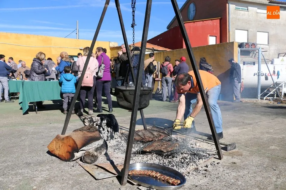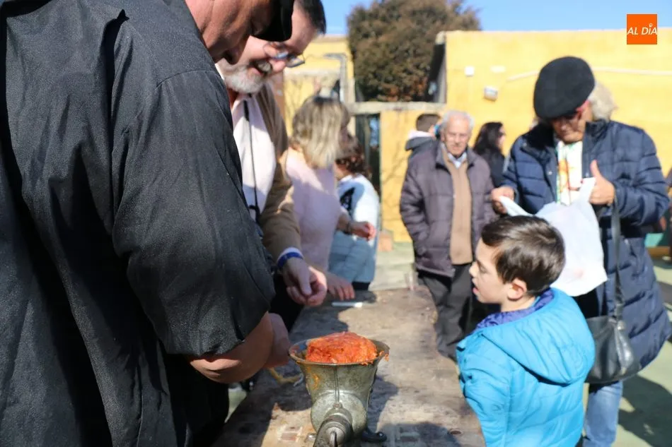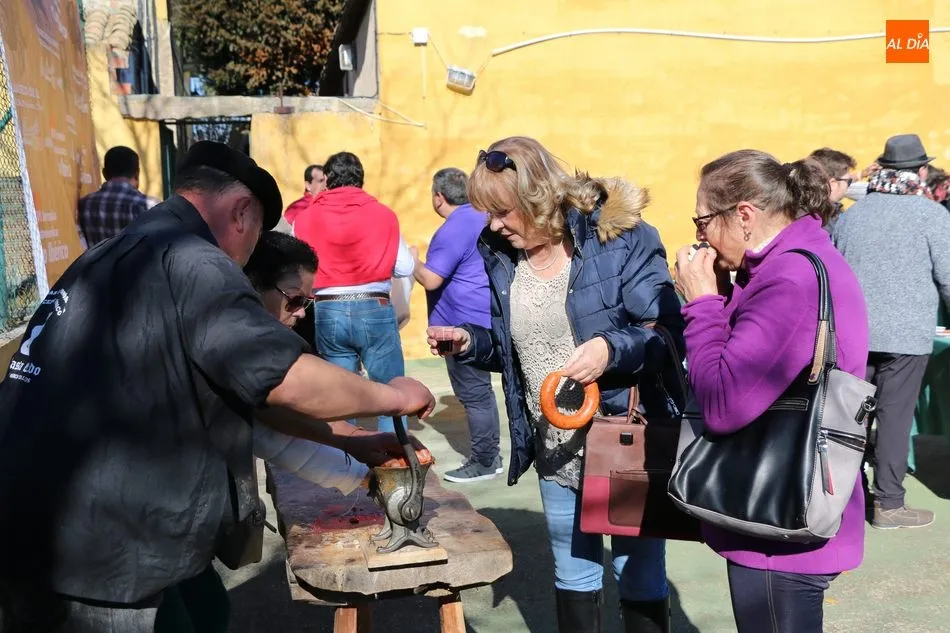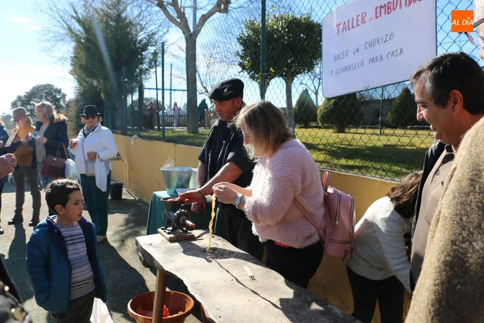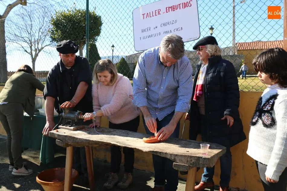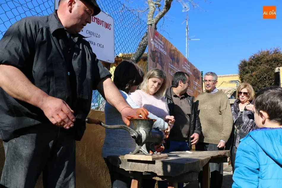 Entre tanto, el público asistente pudo degustar el vino de la DO Ribera de Duero, Tinto Roa Crianza, con costilla asada o chichas, mientras los más pequeños conocían su primer chorizo en la máquina de embuchar.