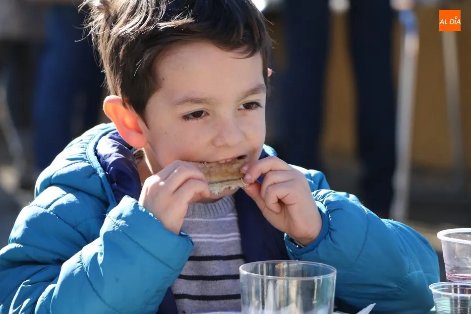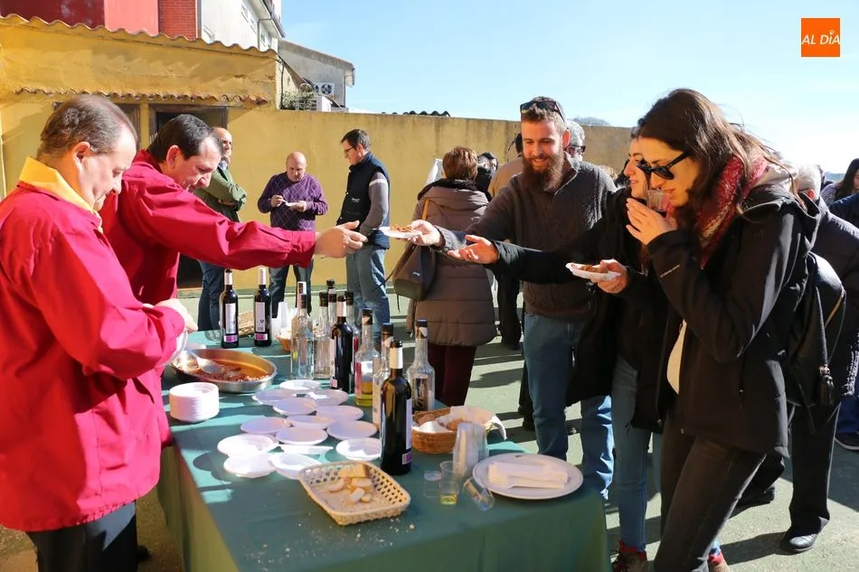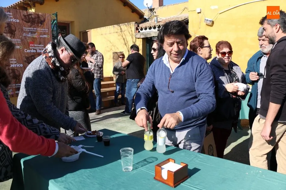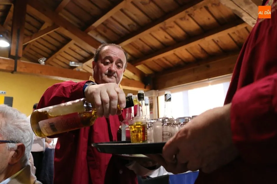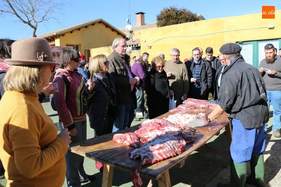 Después de esta demostración y degustación totalmente gratuita, el comedor de Casa Conrado acogería la segunda cita gastronómica de la jornada. Así, cada comensal pudo deleitar su paladar con unos entrantes de virutas de paleta y taquitos de jamón ibérico de bellota, crujiente de papada frita, encebollado de sangre, lágrimas de cerdo ibérico a la brasa y probadura de salchichón. De primero les aguardará alubiones de La Granja con el compango de la matanza (oreja, panceta, chorizo?); y de segundo, lomo ibérico adobado y frito en manteca. De postre, un barquillo de crema de queso con chicharrones caramelizados y almendras tostadas, además de café, perrunillas caseras y licores, y todo regado con tinto Roa Crianza, de la DO Ribera del Duero, y agua mineral, además de un chupito de Licores El Majuelar y las famosas obleas de Cipérez Pan de Ángel para premiar al paladar.