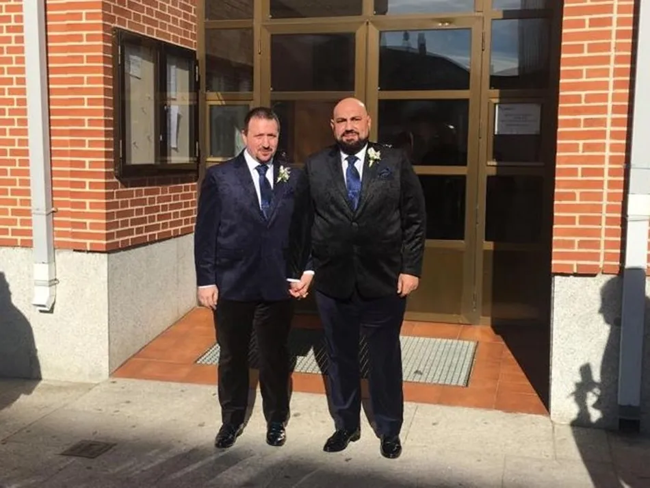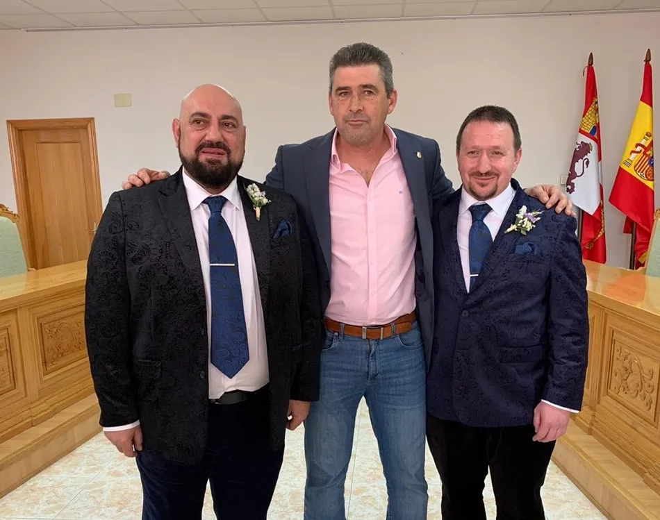José Antonio y Aritz han contraído matrimonio en la mañana de este sábado en Villoria. El enlace, el primero de dos personas homosexuales celebrado en la localidad, ha sido oficiado en el salón de plenos del ayuntamiento de Villoria por el alcalde, Julián Barrera.
