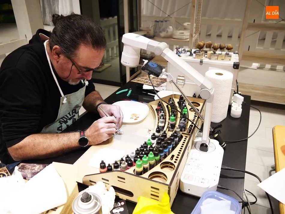 El profesor de la Universidad de Salamanca, Ricargo G. Núñez, enseña técnicas para pintar miniaturas, construir maquetas y desarrolar escenografías