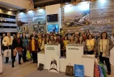 Dentro de su recorrido por Fitur, este grupo se detuvo de forma especial como es lógico en el stand de Ciudad Rodrigo, que se comparte con Almeida. Allí pudieron saludar a las concejalas Azahara Martín y Soraya Mangas.