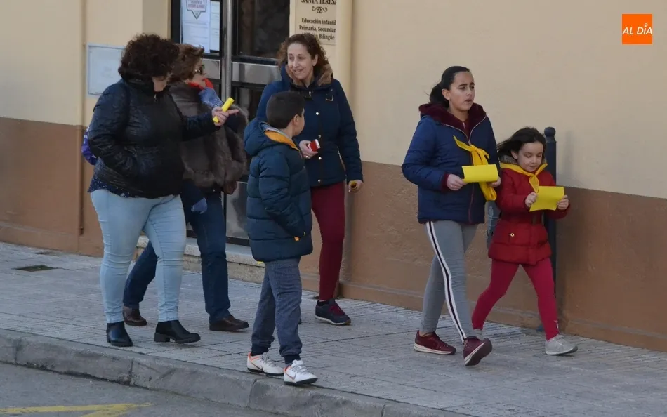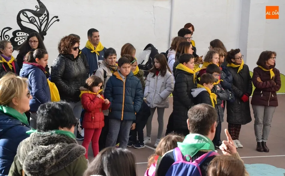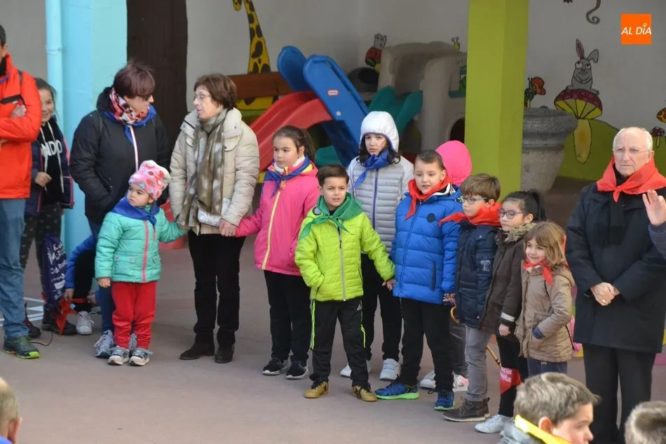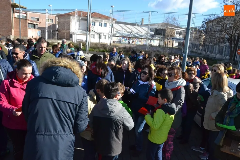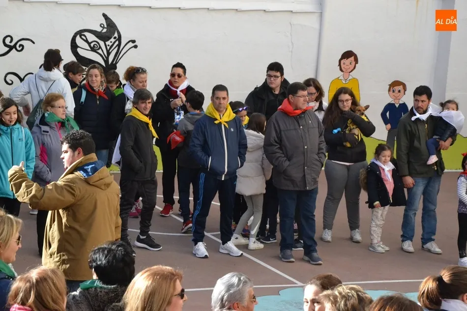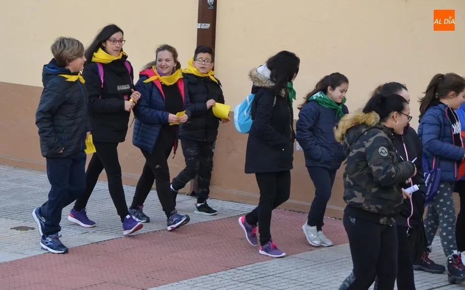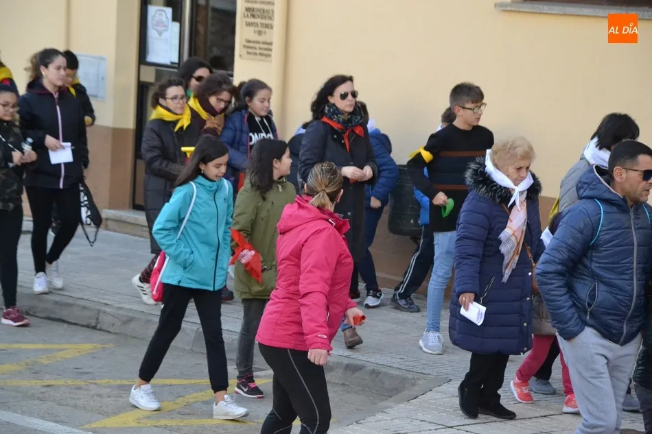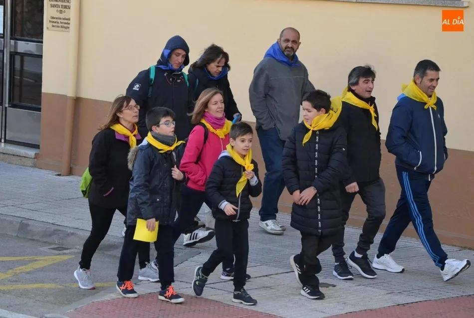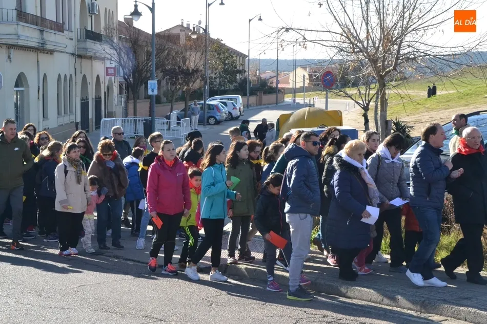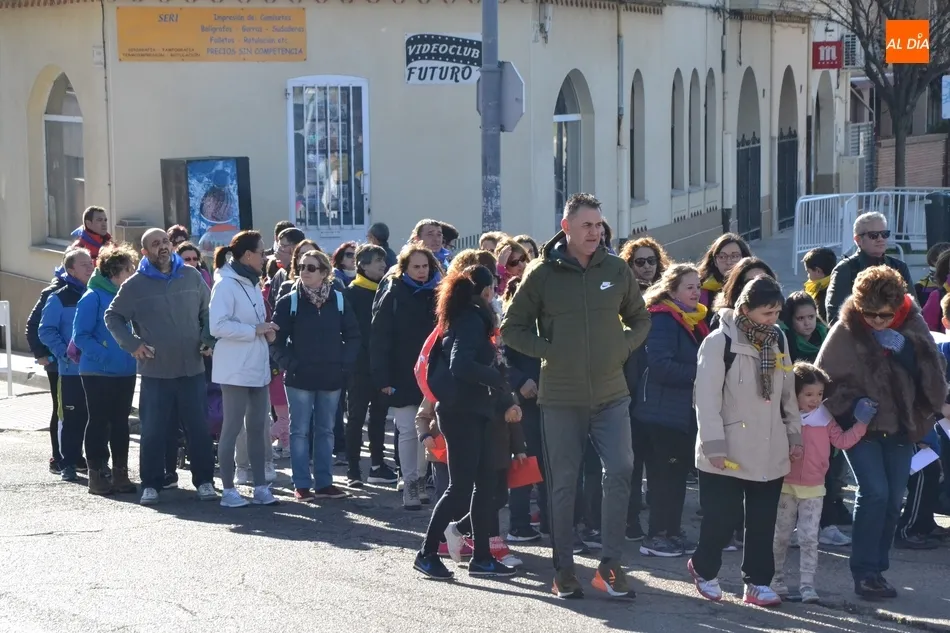 Alrededor de 150 personas marchan a Ivanrey con ‘obstáculos’ por el camino   | Imagen 1Como en ediciones anteriores, según fueron llegando al citado patio se entregaron a los participantes unas pañoletas de colores, para posteriormente conformar grupos en función de esos colores. Como novedad, allí mismo se repartieron unas cartulinas de los mismos colores a modo de credenciales de paso, para que fueran selladas en varios puestos repartidos por el camino.