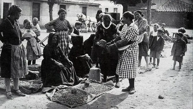 Una de las cosas más típicas de su fiesta eran los puestos de vendedores ambulantes, entre los que destacaban los cacharreros con sus famosos botijos de todas las clases y formas o los de las avellanas