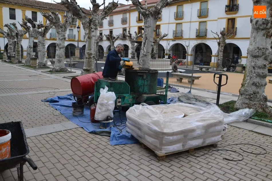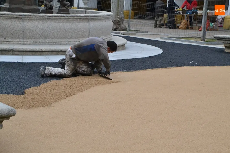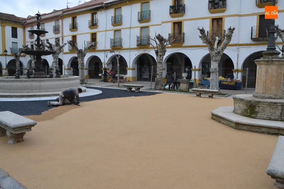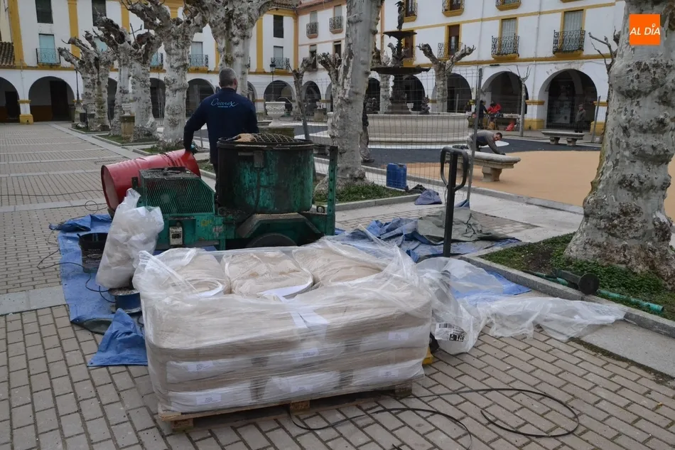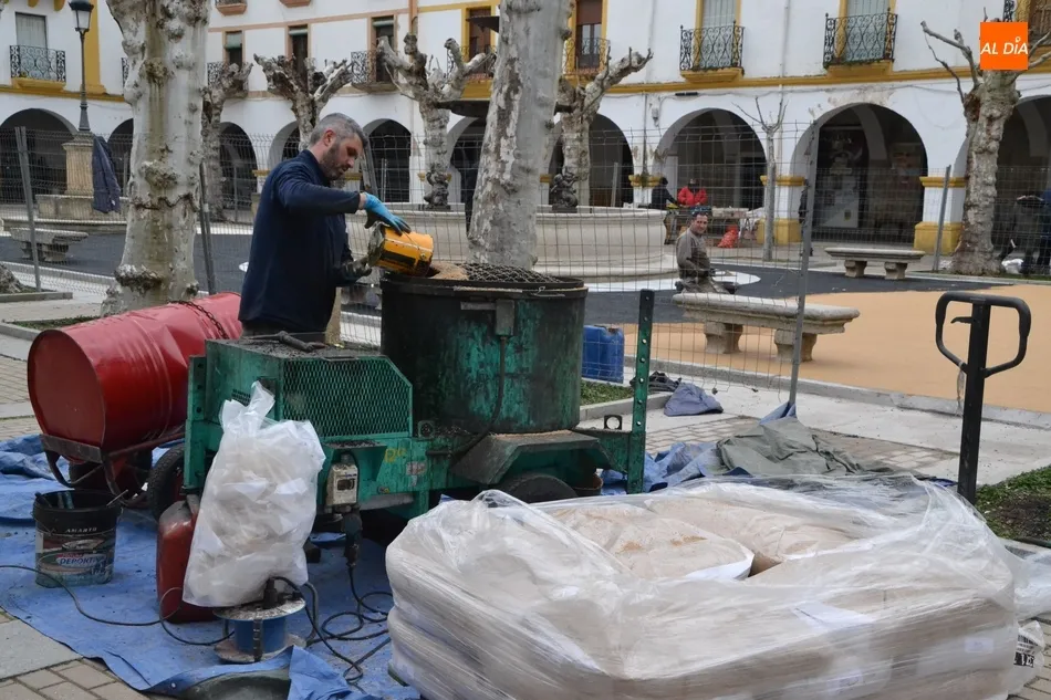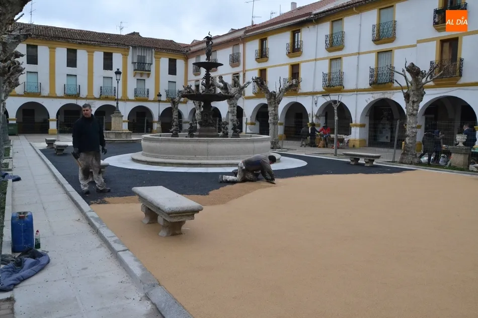 La zona central de la Plazuela del Buen Alcalde de Ciudad Rodrigo está ya en plena recta final del proceso de transformación puesto en marcha por el Ayuntamiento para retirar la arena que acababa provocando problemas en el funcionamiento de su fuente al ser arrojada al vaso de la misma por niños que lo tenían ya casi como ?tradición?.