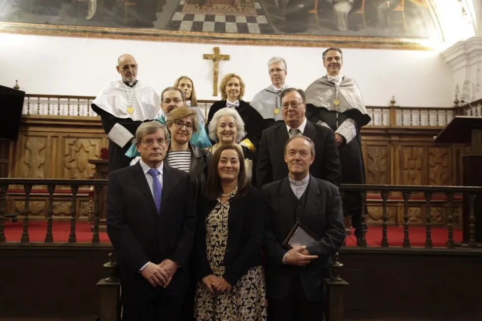 Además, se ha llevado a cabo un reconocimiento institucional a la permanencia de los profesores José Luis Ingelmo, Juan Jesús Luna, Begoña Díaz y María de las Mercedes García, de la Facultad de Educación; y Emma Mª Villafaina, del Servicio de Idiomas Modernos, así como a la Bibliotecaria General, Mª Isabel Manzano, por sus 25 años de dedicación a la institución académica. Por último, se ha otorgado la distinción a Santiago del Cura Elena (PDI Teología), Eliseo Martín y Carmela Velasco (PDI Logopedia), Rosa Mª Montejo del Arco (PDI Enfermería), Federico Rafael Aznar (PDI Derecho Canónico) y Jacinto Escudero Vidal (PDI Educación) con motivo de su reciente jubilación en 2018.