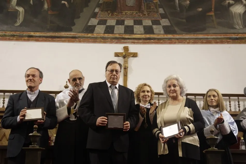 A continuación, se ha procedido a la entrega de los Premios de Excelencia para los alumnos: Andrea Ferreiro, doble Grado en Marketing y Publicidad; Clara de los Ángeles Floriano, Grado en Logopedia; Noelia Martínez, Grado en Maestro en Educación Infantil, y Manuel Sánchez, Grado en Psicología. Y la entrega de los Premios Extraordinarios de Grado y Licenciatura a: Estefanía Aparicio, Grado en Publicidad y Relaciones Públicas; Marina Calderón de la Barca, Grado en Marketing y Comunicación; Paula María Fiz, Grado en Ciencias de la Actividad Física y del Deporte; Mateo González, Grado en Periodismo; Jorge Manuel Pinheiro, Licenciado en Teología Pastoral; José Seijo, Licenciado en Derecho Canónico; Francisco Javier Calvo, Bachiller en Teología; María Estévez, Grado en Maestro en Educación Primaria; Diana Labrador, Grado en Logopedia y Patricia San Millán, Grado en Enfermería.