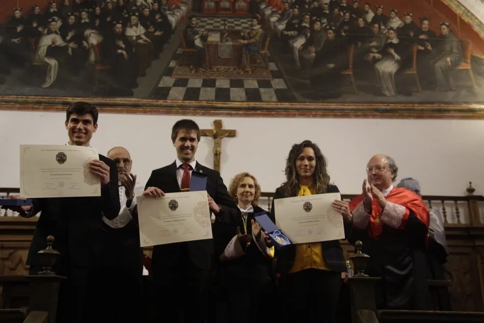 También se han entregado los Premios Extraordinarios de Doctorado a: Jesús Sánchez de la Facultad de Comunicación, por su tesis ?El impacto del Concilio Vaticano II y la transformación social de la España tardofranquista en la línea editorial de Vida Nueva (1968-1975)´. Marina Wöbbeking de la Facultad de Psicología, por su tesis 'Evaluación de la reserva cognitiva global como predictor del declive/deterioro en población de mayores autónomos e institucionalizados'. Víctor Tejedor de la Facultad de Educación, por su tesis ?Avances en la evaluación del trastorno obsesivo-compulsivo en personas con discapacidad intelectual leve: Construcción de la escala DI-TOC´.