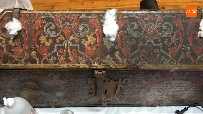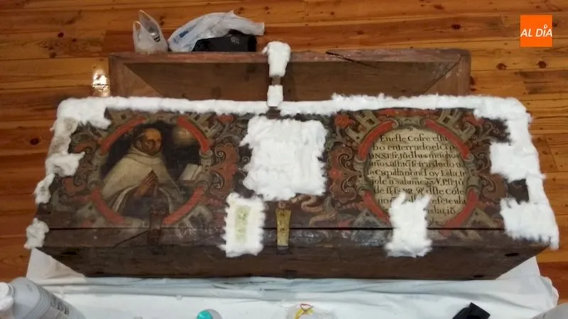 - Urna funeraria San Juan de la Cruz Siglo XVII PP. Carmelitas Descalzos de Alba de Tormes: limpieza , limpieza química para retirar la pintura dorada que cubría la decoración con pan de oro (zona perimetral de la caja y herrajes), reintegración cromática en zonas con pérdida pictórica, tratamiento de zonas repintadas (cartela con texto en el frente de la caja) para hacer más uniforme su visibilidad y protección final con barniz.